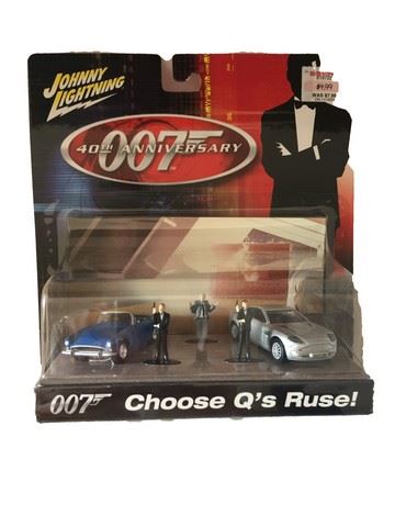Johnny Lightning 007 40th Anniversary "Choose Q's Ruse!" Release #2 with a collectible, die-cast Aston Martin V12 Vanquish replica and Sunbeam Tiger replica from the film. New in package. Great condition. (8"x8")