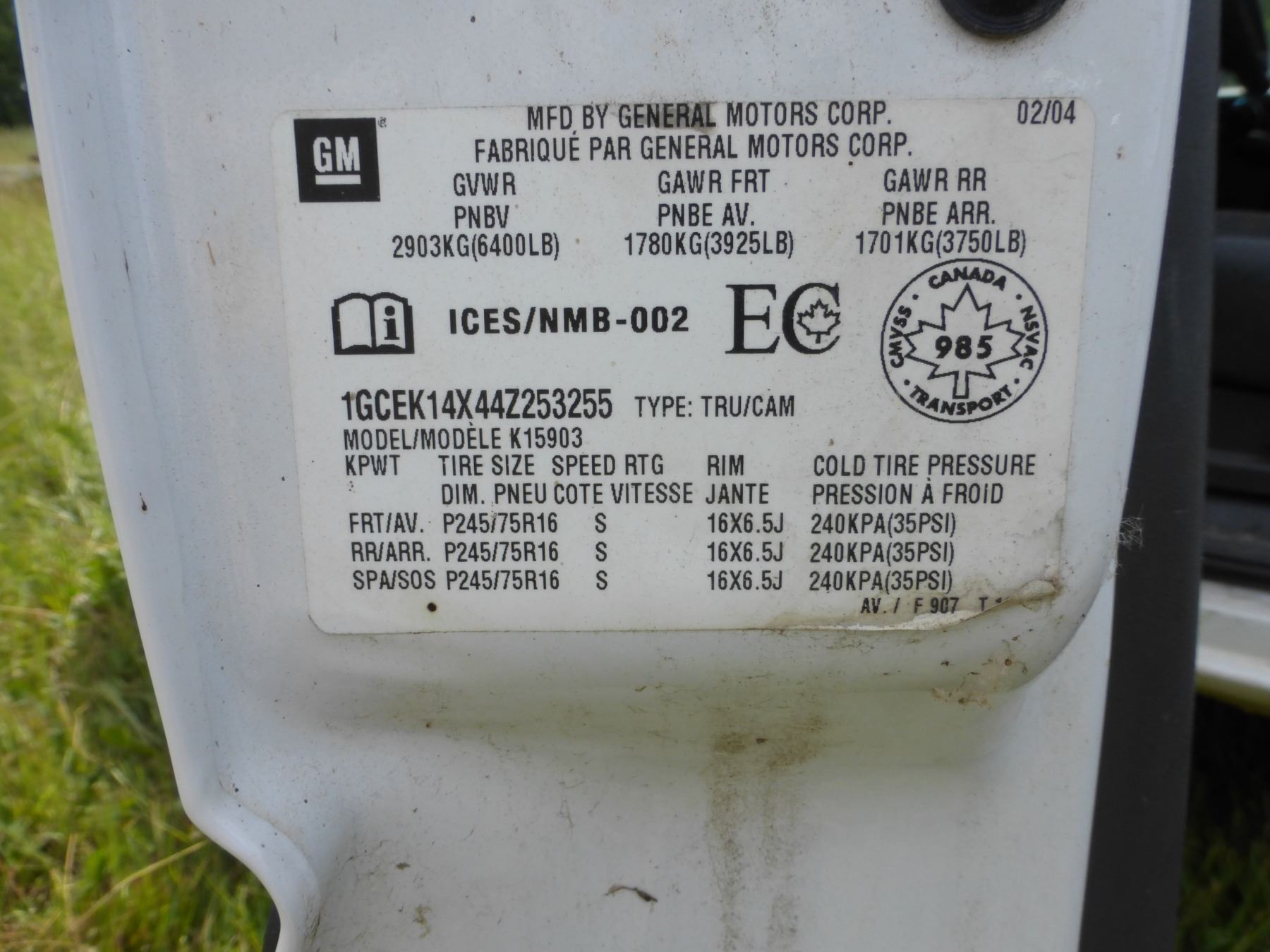 02/04 Silverado 4x4, Reg. Cab, V8- 5 spd, Canopy, #1GCEK14X44Z253255 (Has Ignition Key & like new spare tire, Not Running)