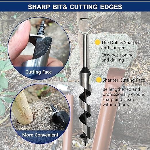 1 x 10-inch hand auger wood drill, hexagon embedded welding bushcraft hand auger wrench scotch eye auger manual bushcraft auger set w/leather case survival tools -by minliguy