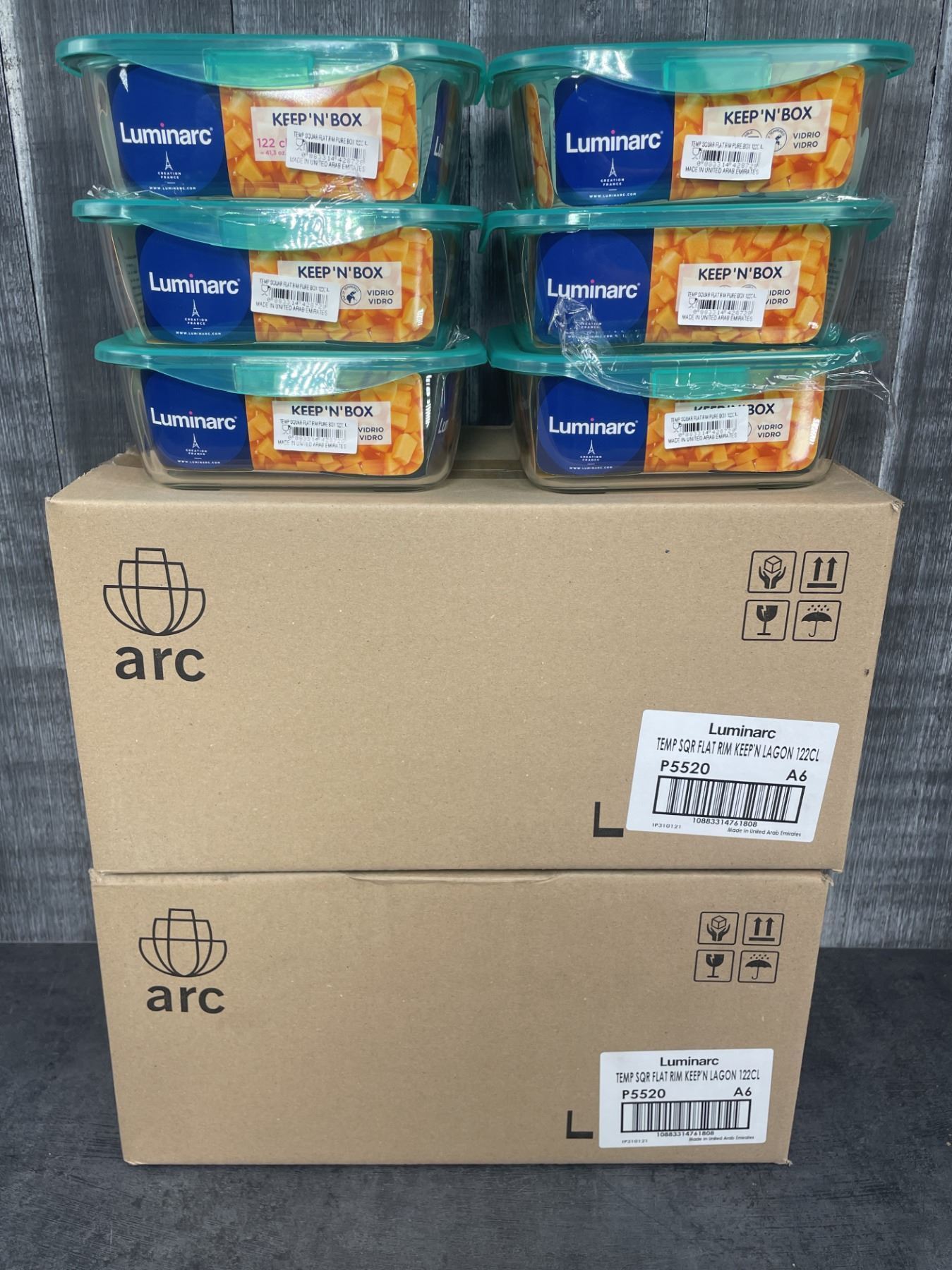 1.22L Glass Square Keep N Boxes, Arcoroc P5520 - Lot of 18 (3 cases)