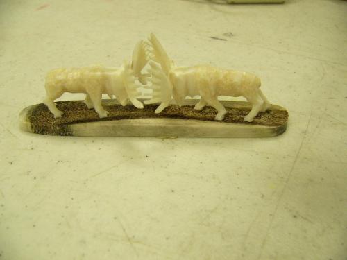 1.25" tall fighting ivory moose on fossilized bone base by Don Savage (2)
