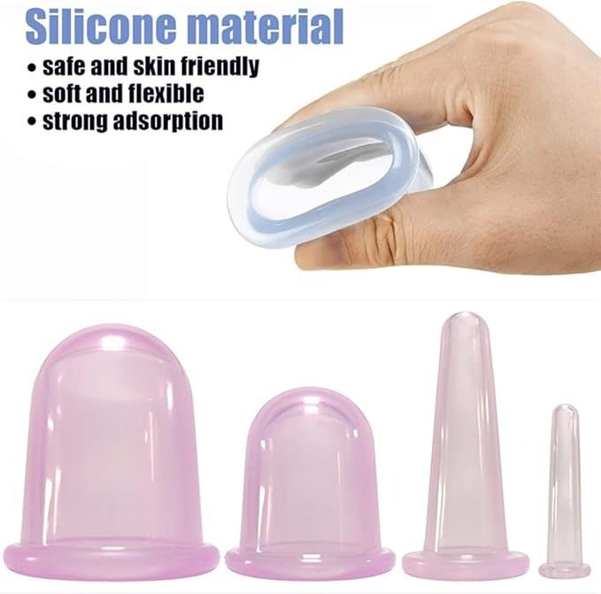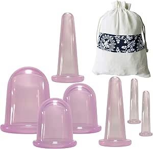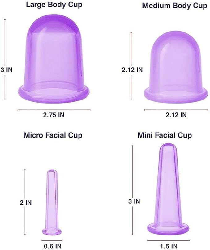 Facial Cupping Set Silicone Cupping Therapy Sets 7Pcs Anti-Cellulite Cup Vacuum Suction Massage Cups with Storage Bag for Muscle,Nerve,Joint Pain Relief and Cellulite Blaster Massage (Purple)
