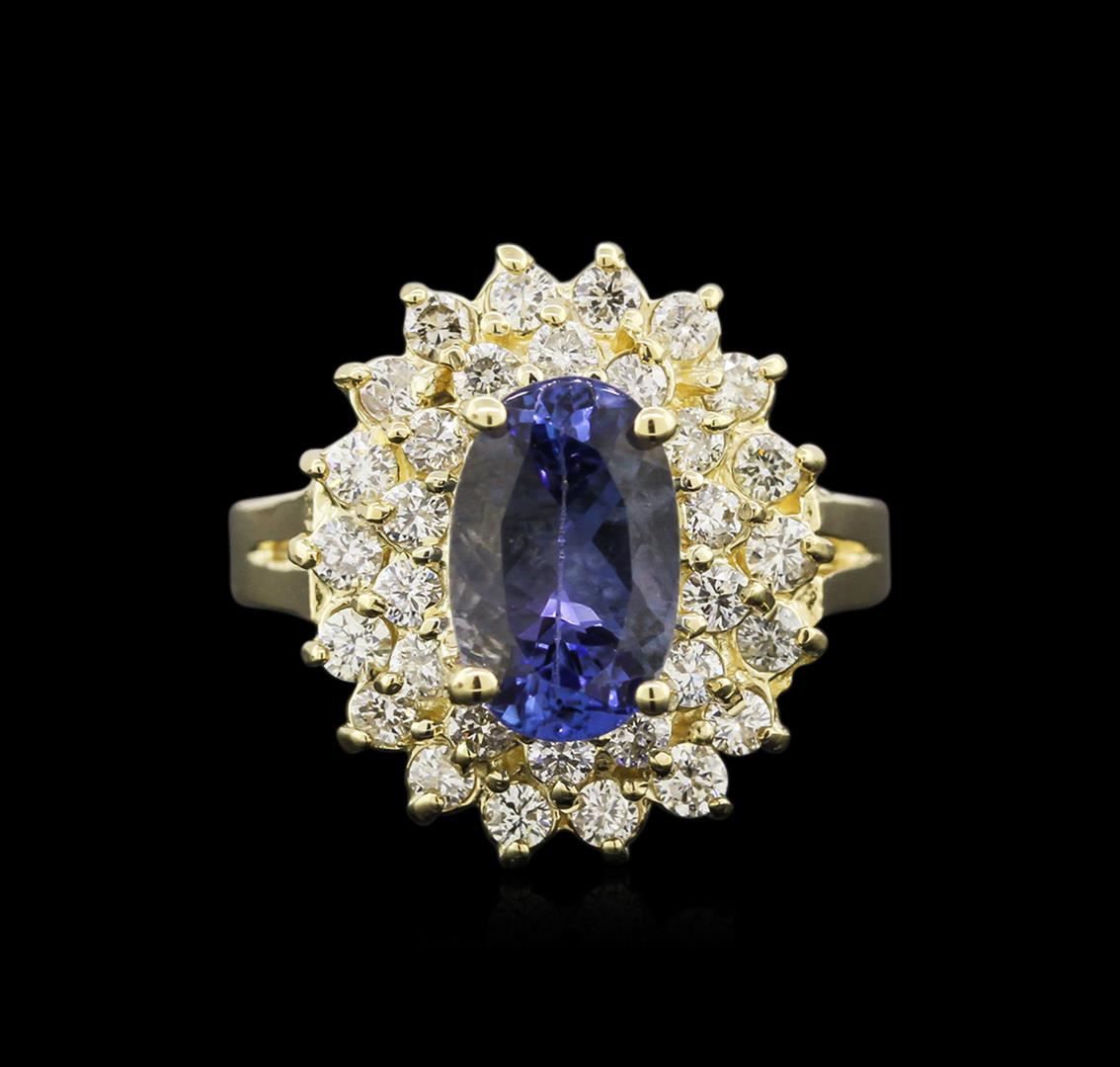 One ring featuring: 14KT yellow gold weighing 5.60 grams containing one tanzanite center stone with a total weight of 1.90ct and 32 diamonds with a total weight of 0.77ct.