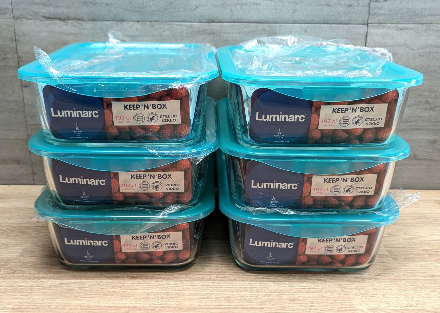 1.97L Glass Rectangular Keep N Boxes, Arcoroc P5516 - Lot of 6