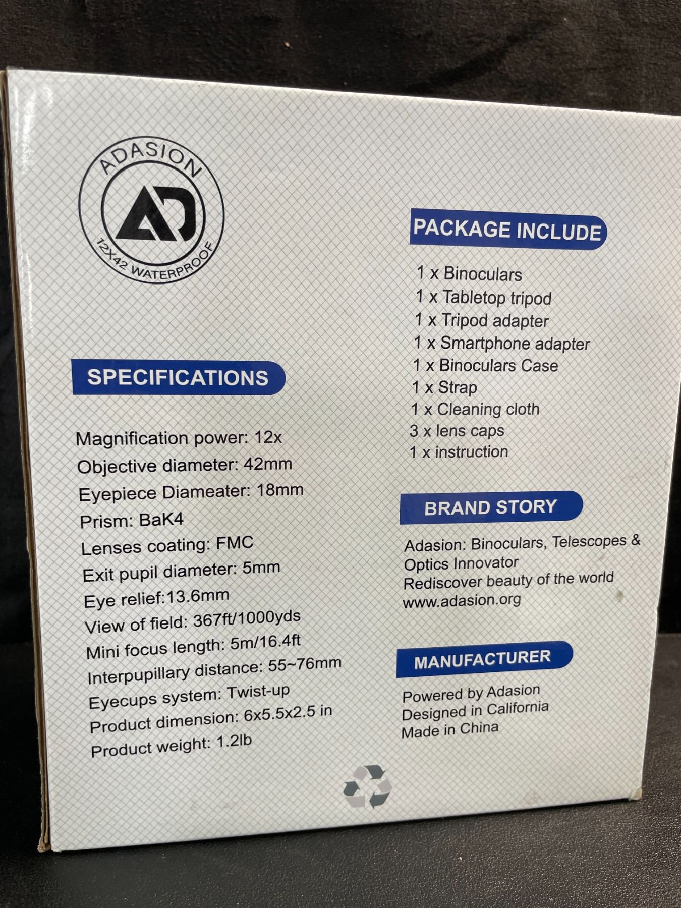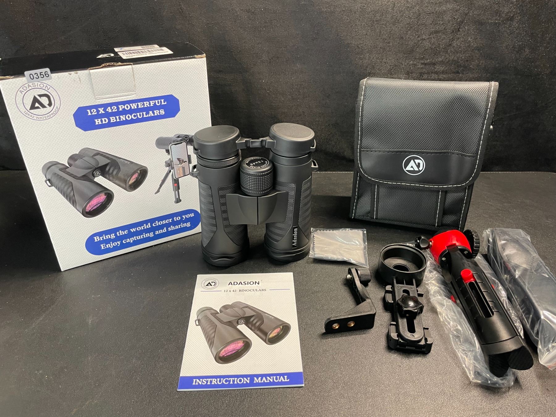 Adasion 12x42 HD Binoculars for Adults Long Range with Phone Adapter and Tripod, Super Bright High Power Lightweight Waterproof Binoculars for Hunting Stargazing Safari Wildlife Bird Watching Sports