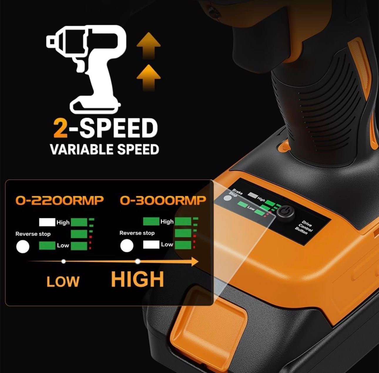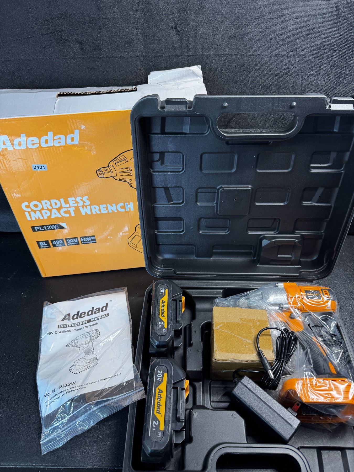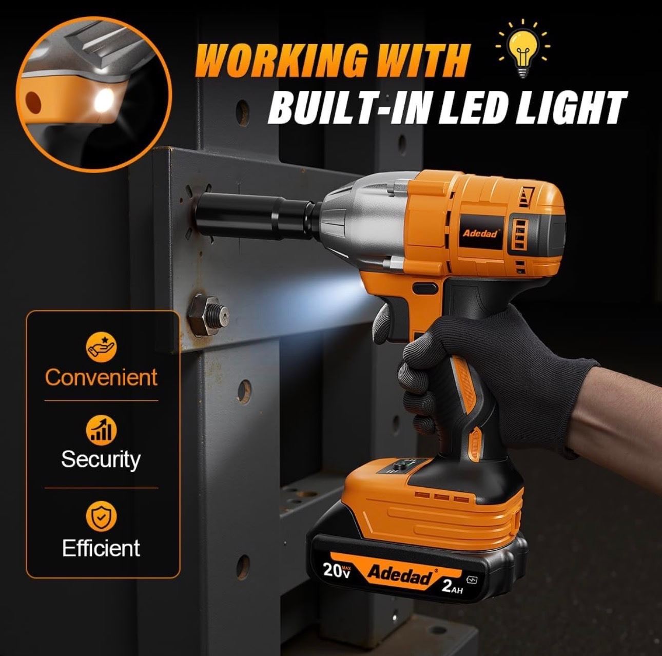 - 480N.m Cordless Impact Wrench, 20V 1/2" High Torque Impact Gun with 2 Batteries, Charger, Sockets & Case; Impact Driver for Car/DIY Tasks