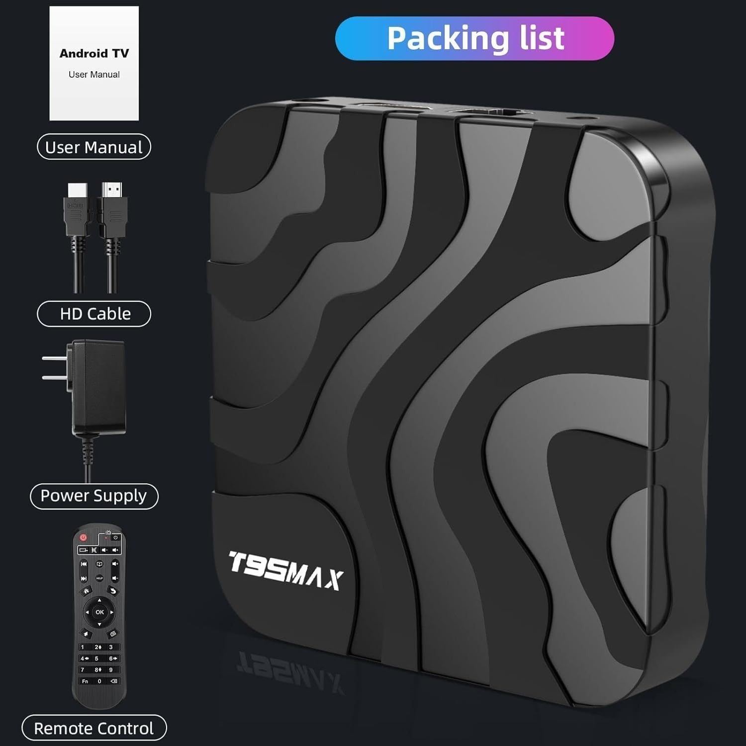 Android 12.0 TV Box, T95MAX Android Box with H618 Quadcore 2GB RAM 16GB ROM Supporting 2.4G/5.0G Dual WiFi BT 4.0 6K Ultra HD 3D H.265 TV Box