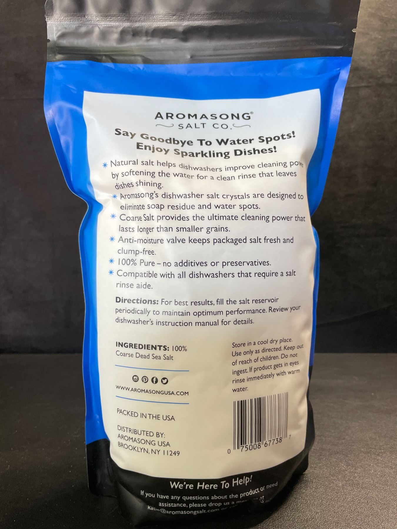 Aromasong Dishwasher Salt 5 LB - 100% Natural Water Softening Agent for Cleaner Dishes & Washer Reactivation - Compatible with Bosch, Miele, Whirlpool, Danby, Thermador, and more.