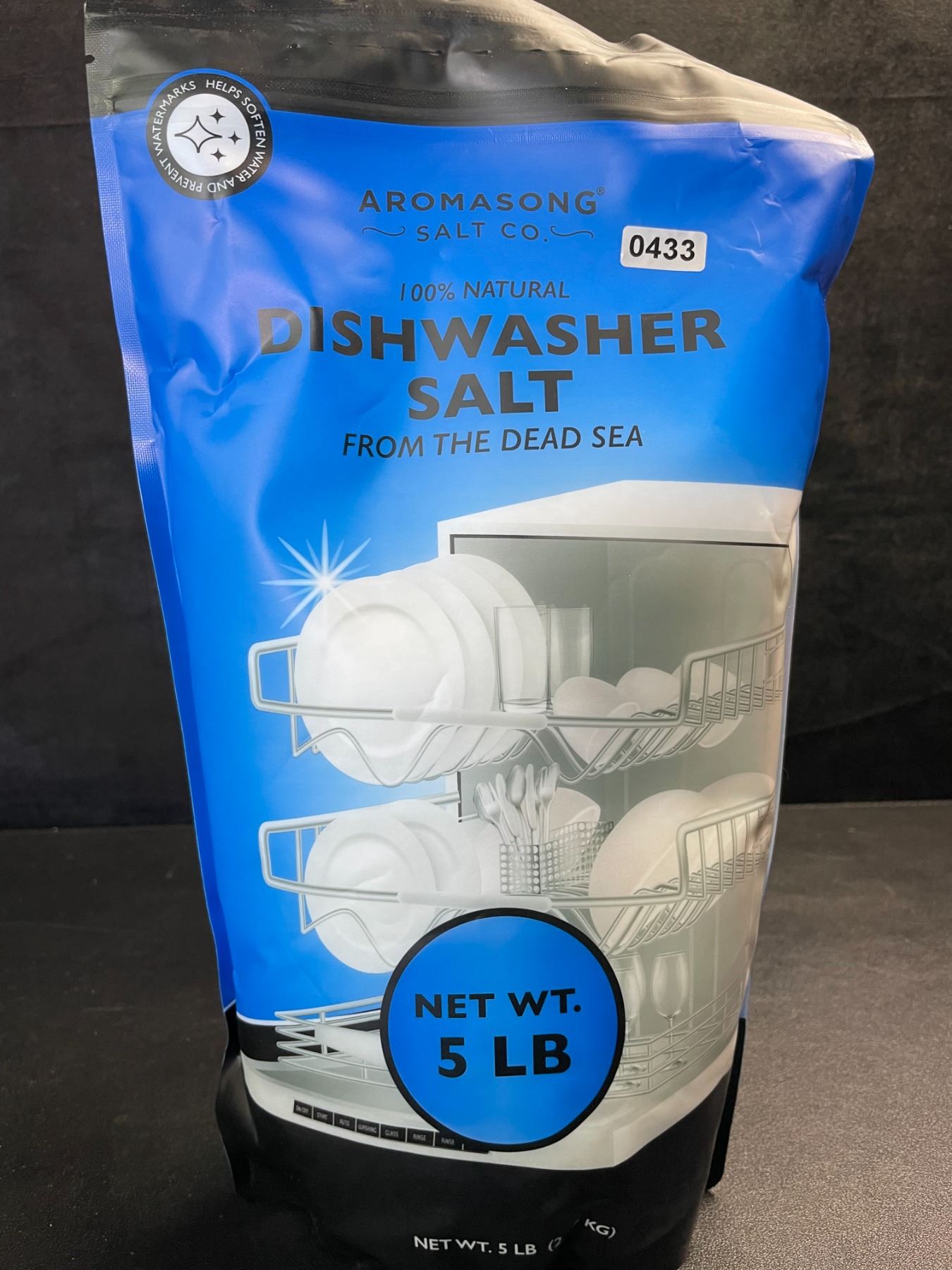Aromasong Dishwasher Salt 5 LB - 100% Natural Water Softening Agent for Cleaner Dishes & Washer Reactivation - Compatible with Bosch, Miele, Whirlpool, Danby, Thermador, and more.