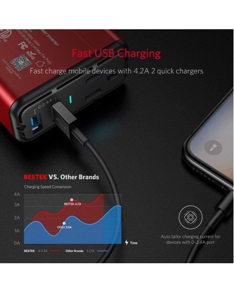 BESTEK 150W Power Inverter DC 12V to 110V AC Converter 4.2A Dual USB Car Adapter