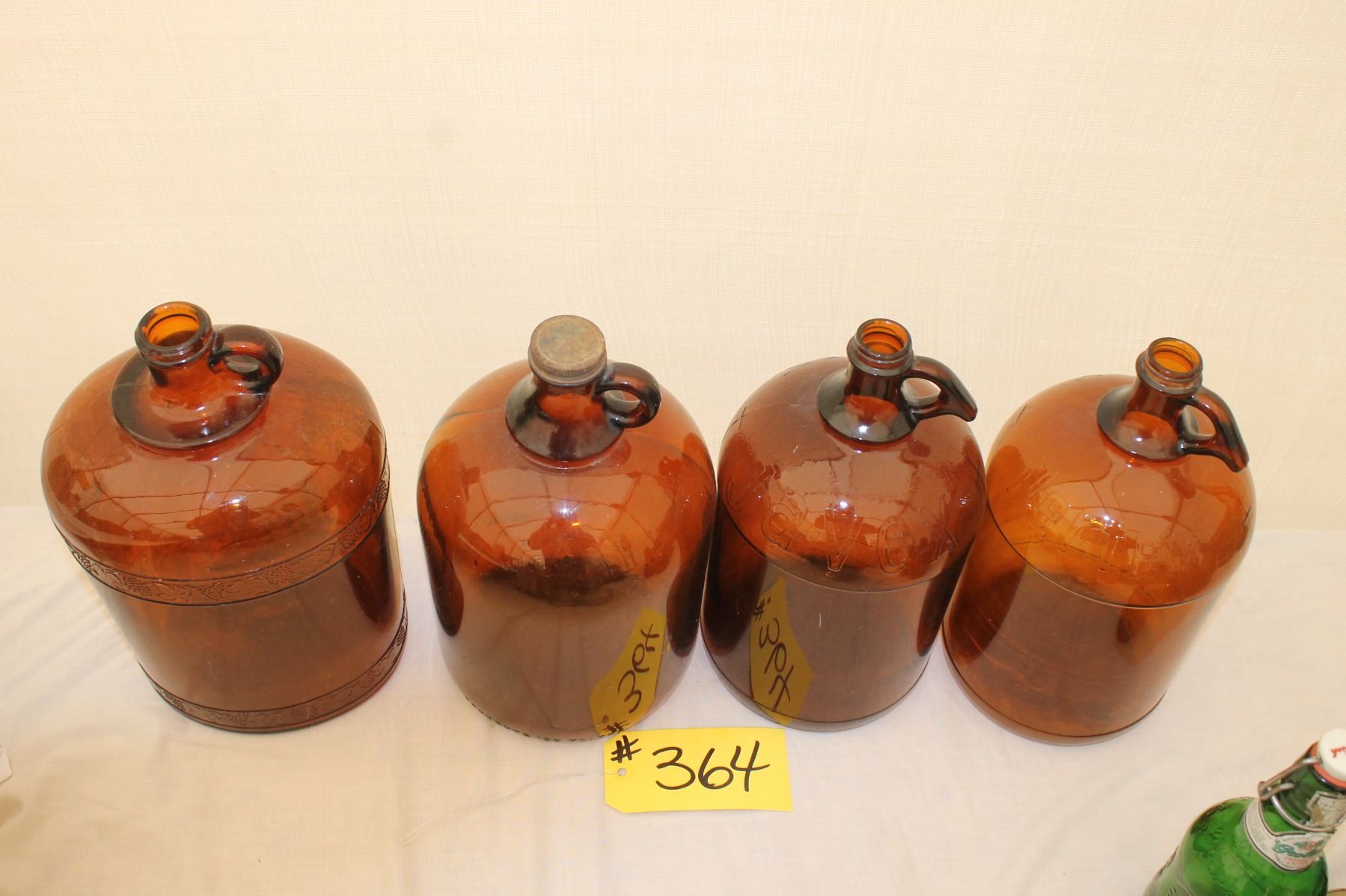 1 - BROWN PUREX JUG, 1 - BROWN AJAX JUG,2 - MISC. BROWN JUGS