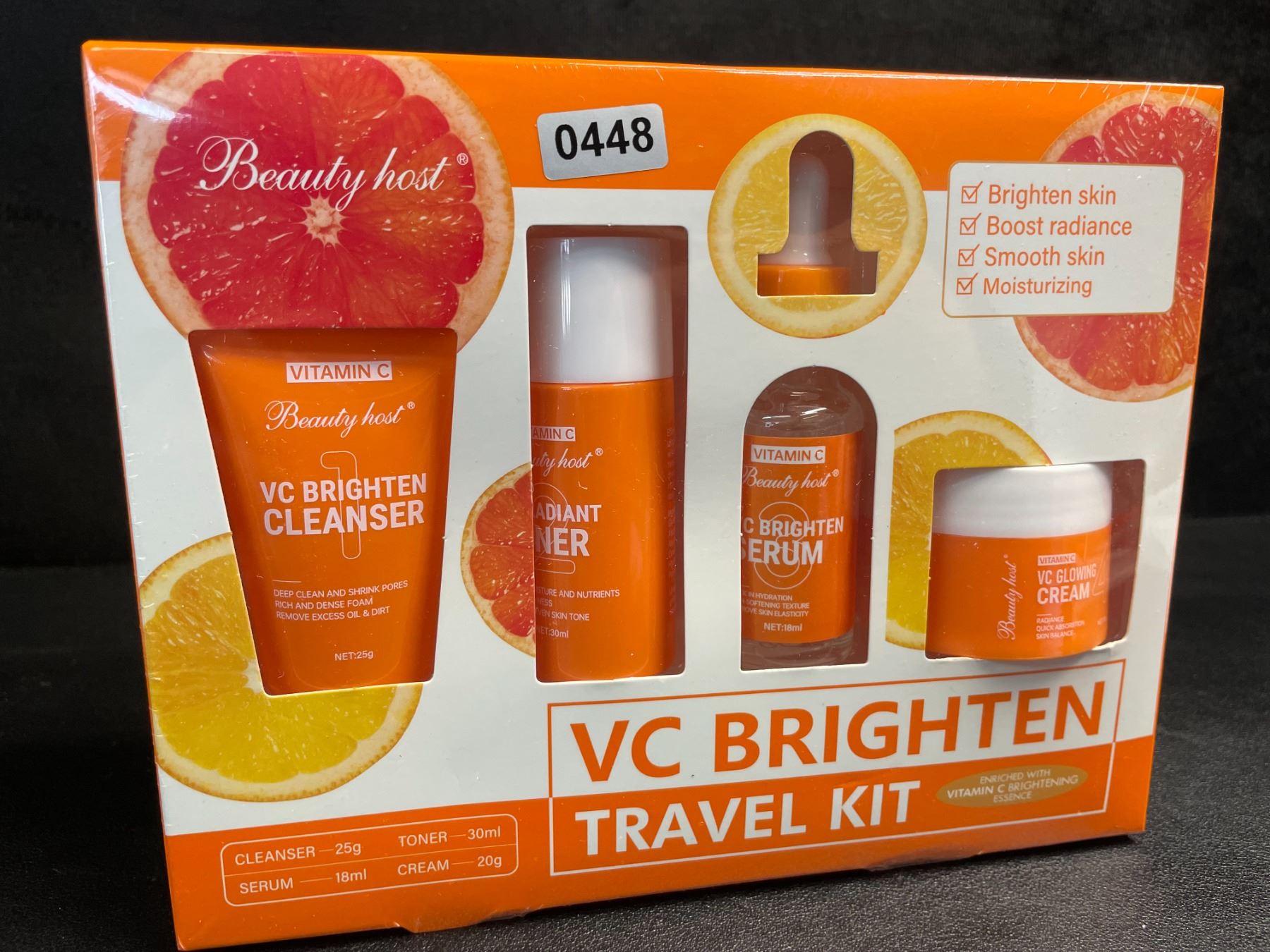 - Beauty Host VC Translucent Travel Set – 4Pcs Vitamin C Skincare Kit for Brightening, Hydration & Glow, Compact Travel-Friendly Facial Set