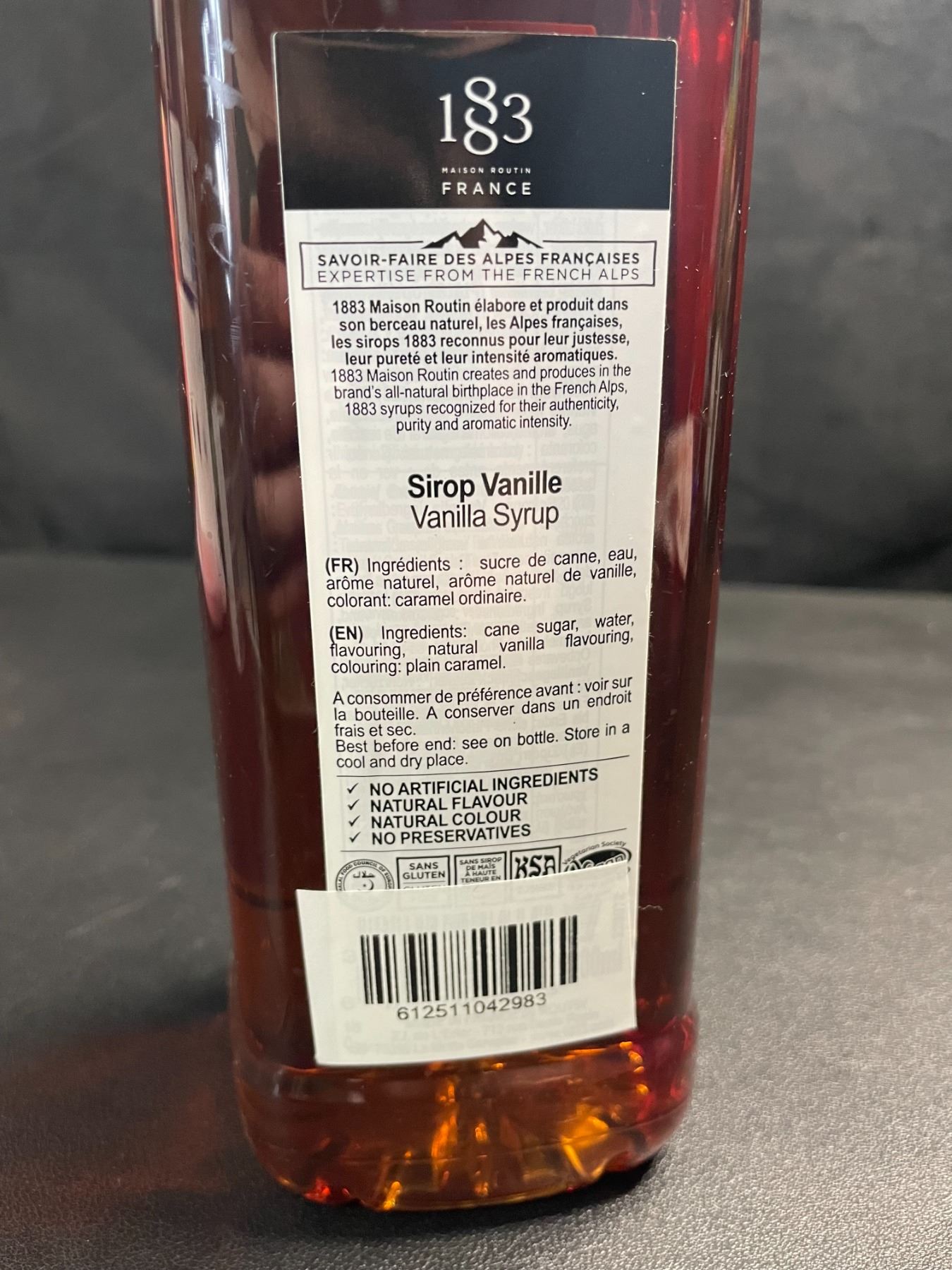 1 Bottle of Maison Routin France Vanilla Syrup - 1L - New (BB: 02/2028)
