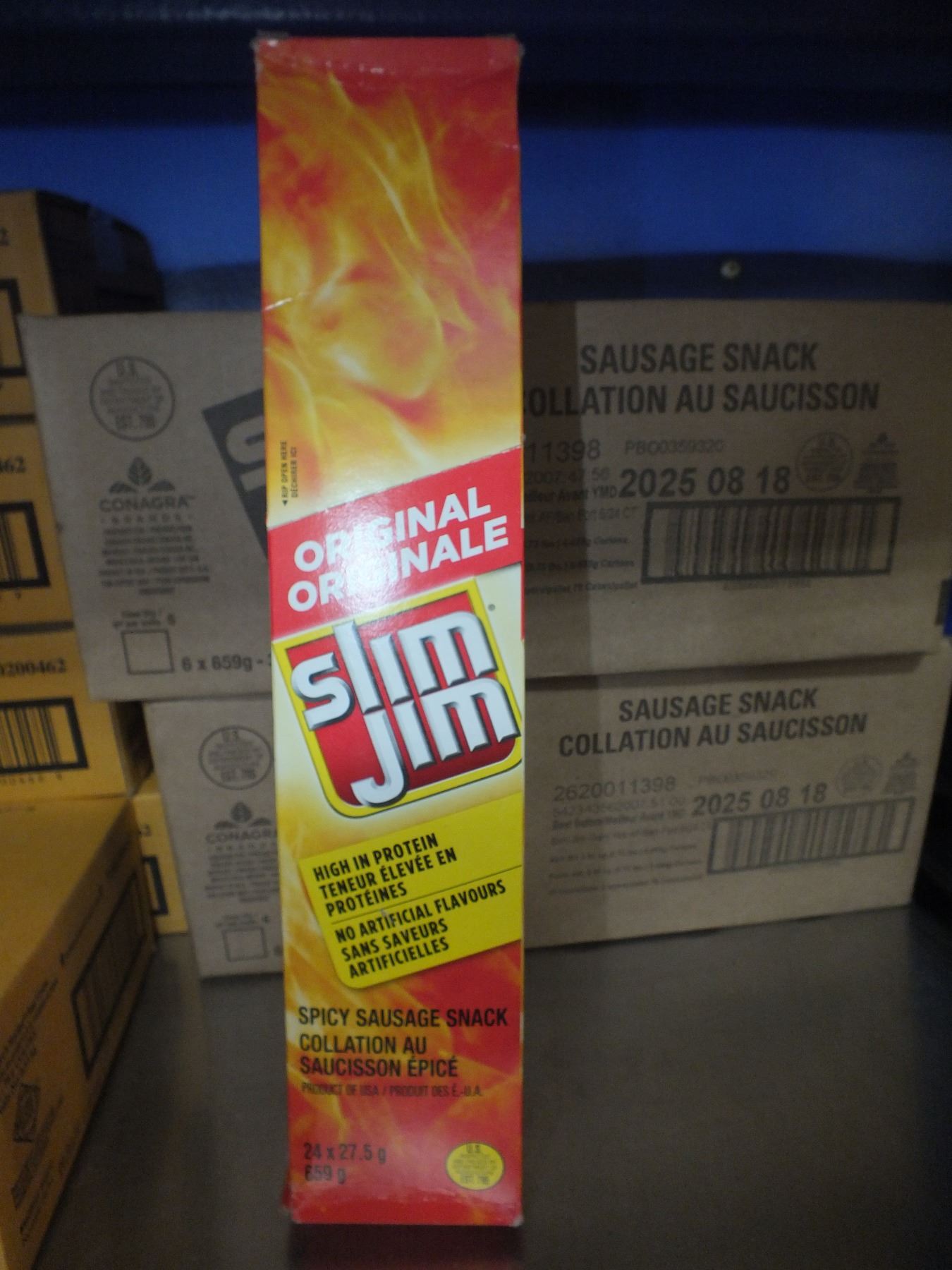 1 Box Of Slim Jims, spicy flavor, 24pcs, exp Aug 18/25...new