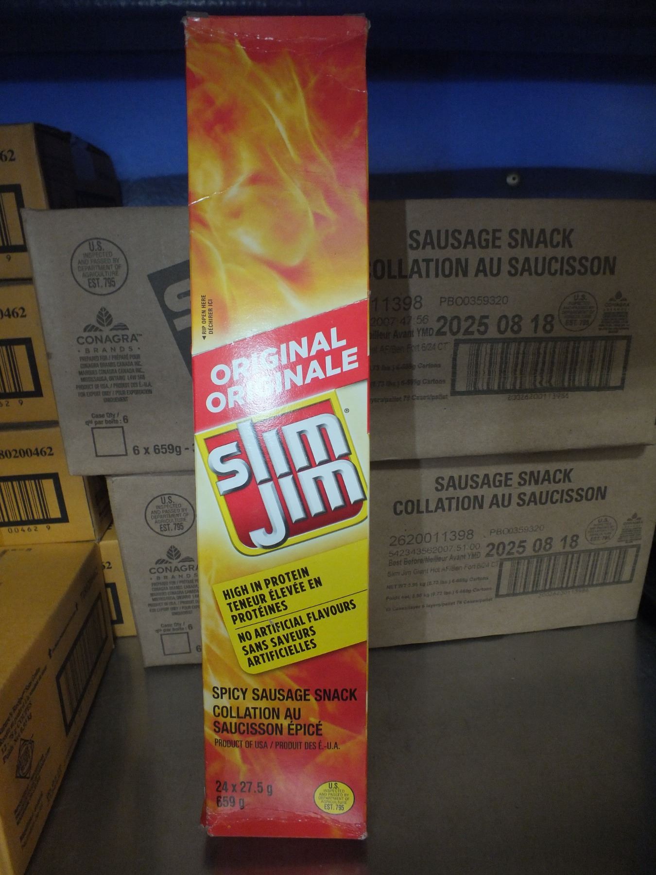 1 Box Of Slim Jims, spicy flavor, 24pcs, exp Aug 18/25...new