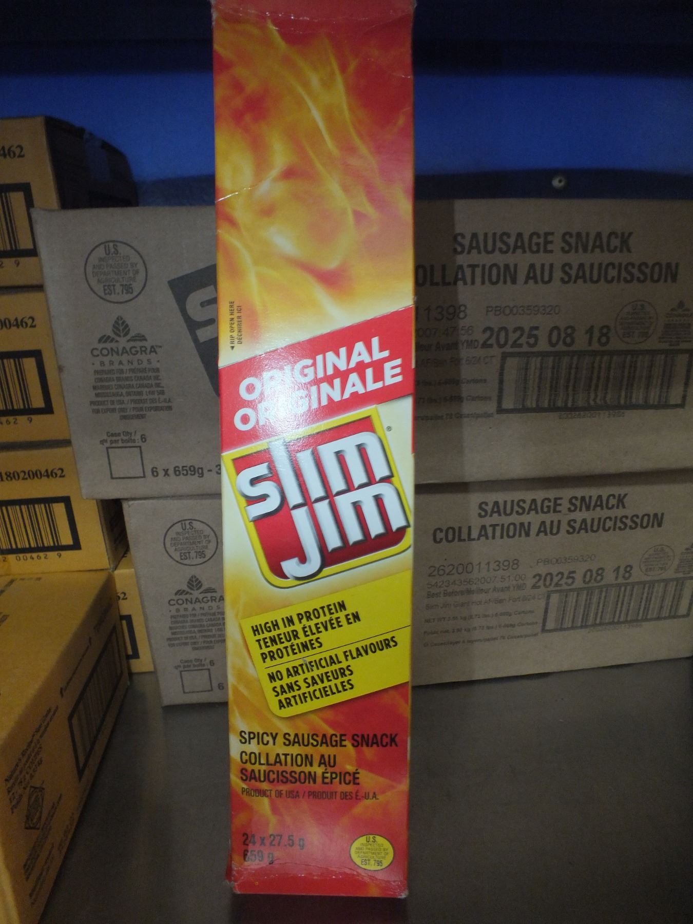 1 Box Of Slim Jims, spicy flavor, 24pcs, exp Aug 18/25...new