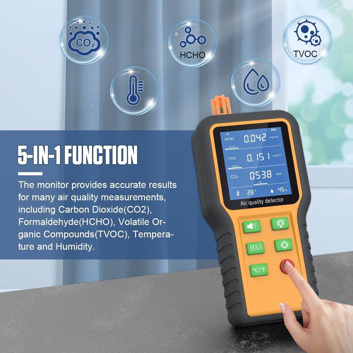 cmtool air quality monitor outdoor indoor air quality test kit, hcho tvoc tester portable carbon dioxide monitor, home co2 detector, temperature humidity meter