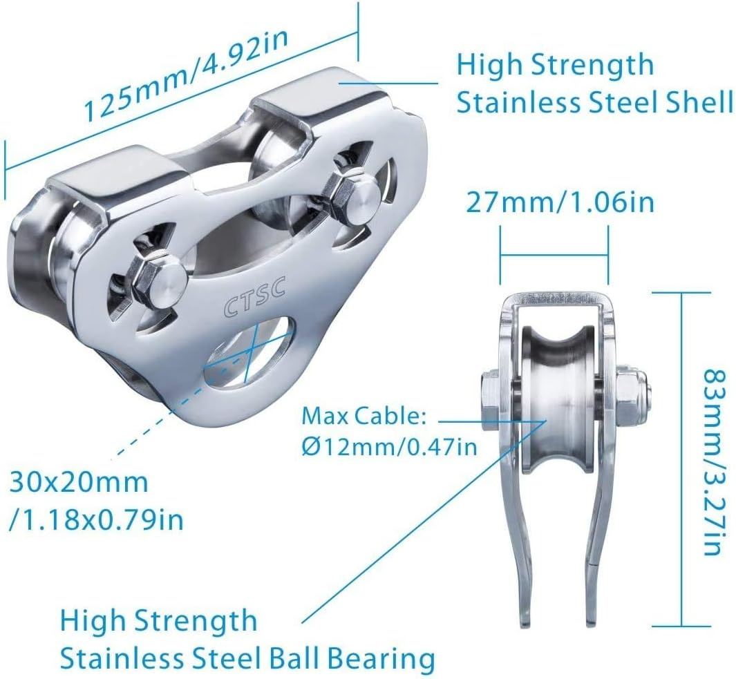 - CTSC Zipline Trolley with Oval Carabiner, Zipline Pulley Kit for Backyard Zipline, Hauling, Rigging and Commercial Purposes with Speed 35/s and Holds Upto 800lbs