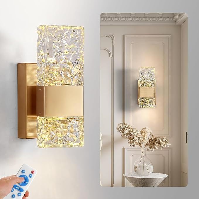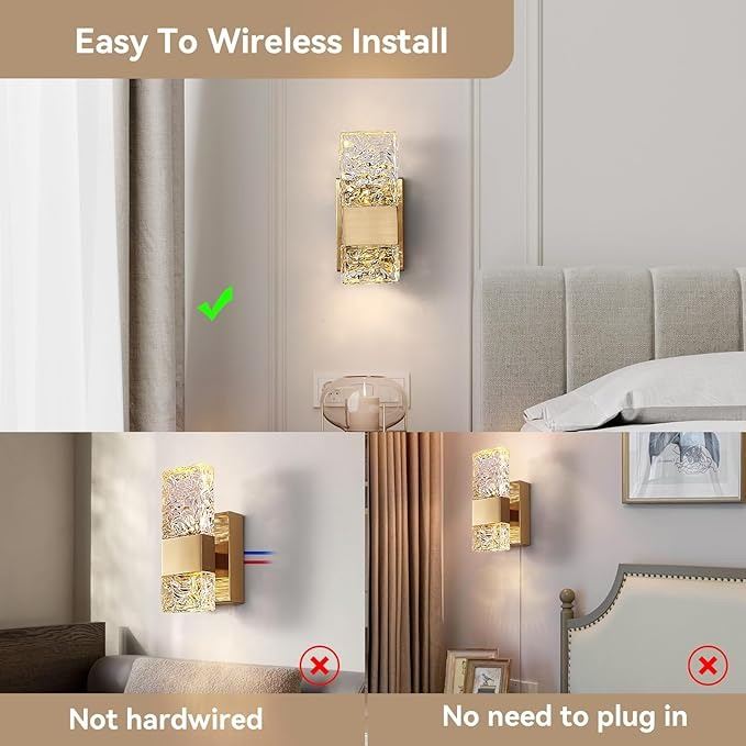 - camuucci Battery Operated Wall Sconce Set of 1 Gold Modern Dimmable LED Wall Lighting,Indoor Not Hardwired Battery Powered Wall Lamp Fixture for Bedroom Living Room Hallway(1-Pack)