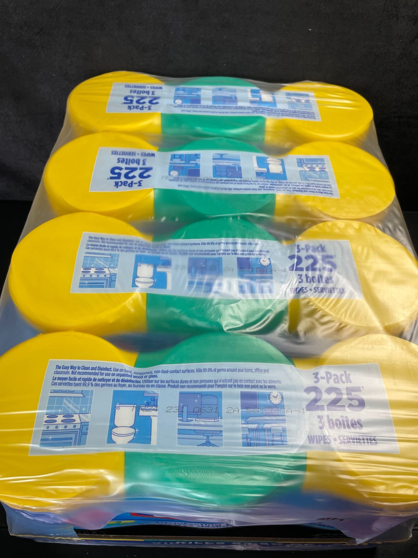 Case contains 4x 3-Packs of Clorox wipes (12 tubs total)