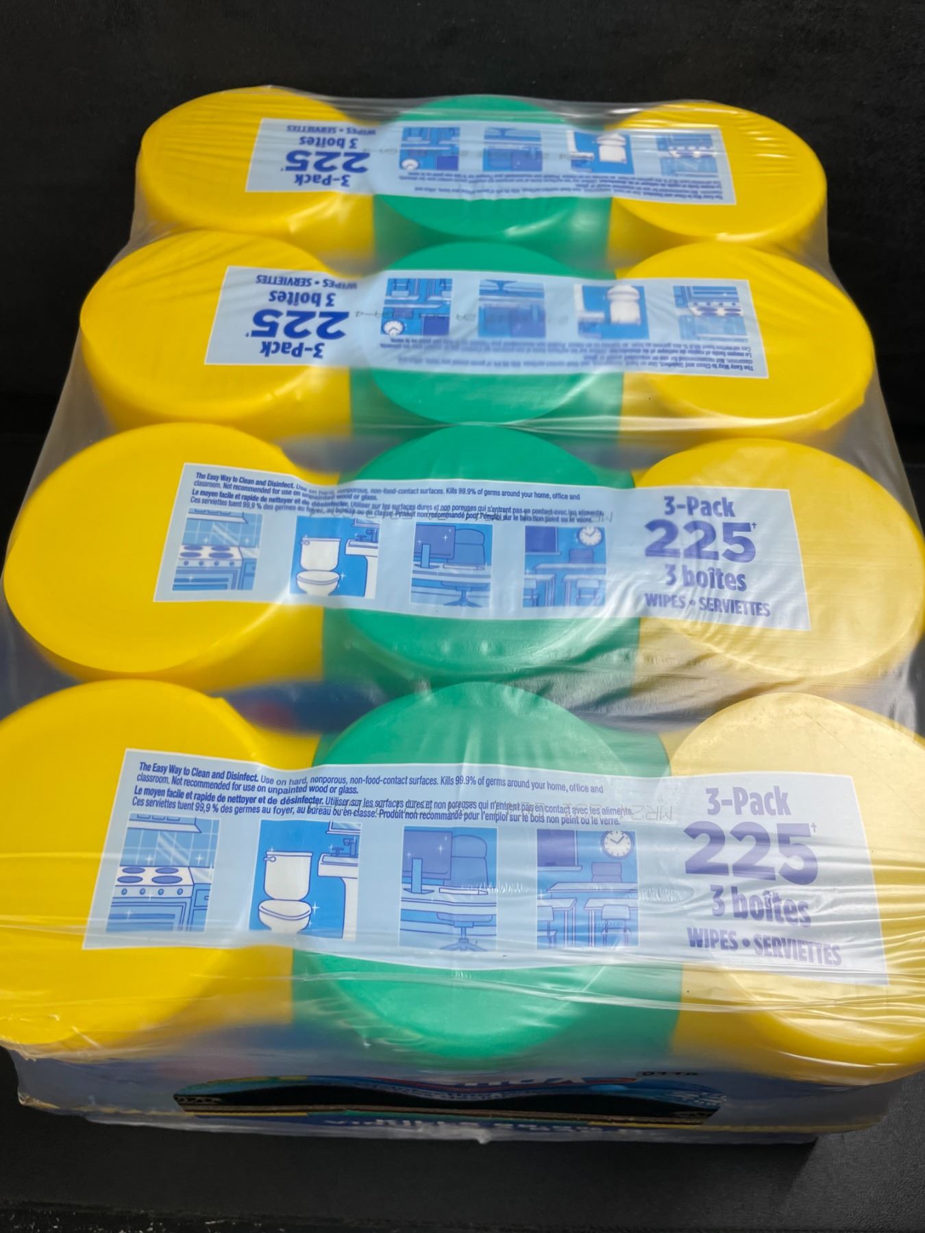Case contains 4x 3-Packs of Clorox wipes (12 tubs total)