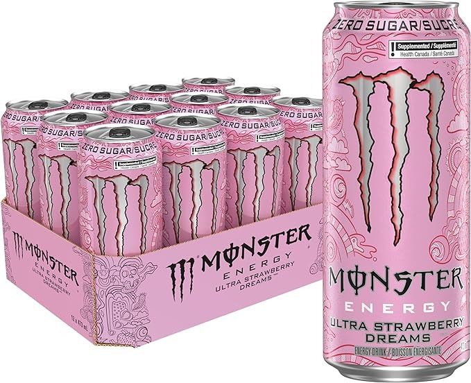 1 Case of Monster Energy Drinks - Ultra Strawberry Dreams - 12 x 473ml Cans - (BB: JA 2026)