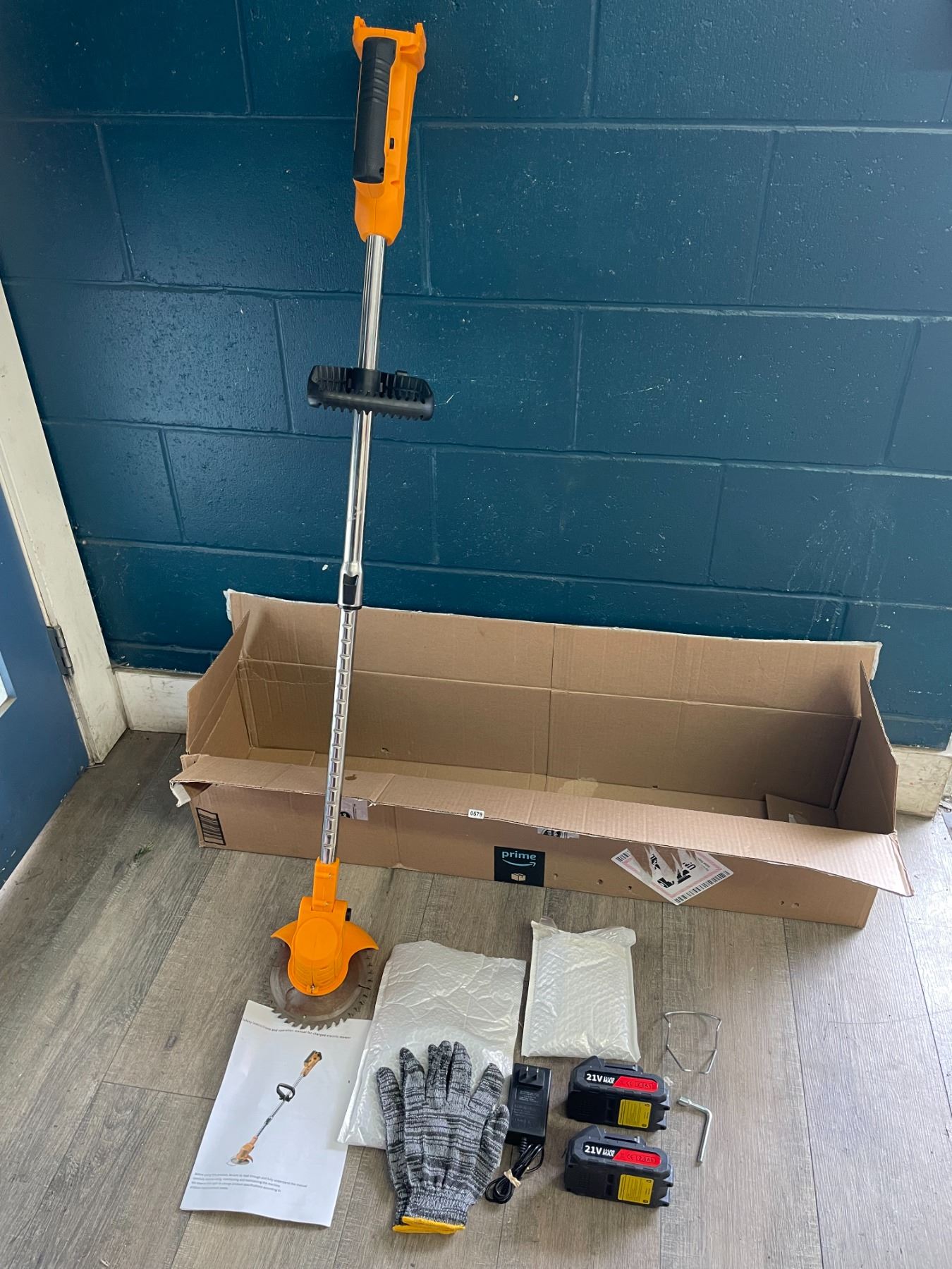 - 21V Cordless Lightweight Weed Trimmer and Edger, with 2 x 2.0Ah 21V Batteries and Charger, 3-in-1 Cordless Grass Trimmer, Edger, and Brush Cutter, Powerful and Long-Lasting, for Lawn, Yard, and Garden, Yellow