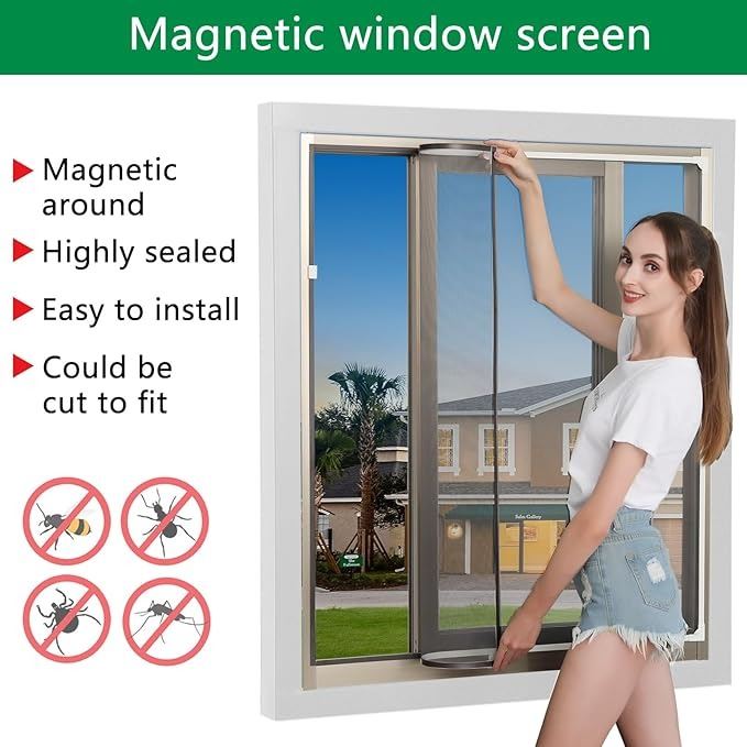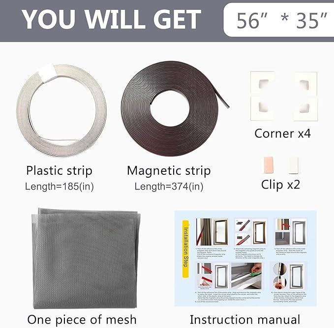 1 DIY Adjustable Magnetic Window Screen Kit (56  x 35  Size) - Brand New