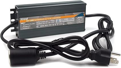 - IP67 Waterproof 12V 10A AC to DC Converter, 120W Power Supply Adapter, 110V-220V to 12 Volt Switching Converter for Car Refrigerator, Air Compressor, Vacuum, Tire Inflator