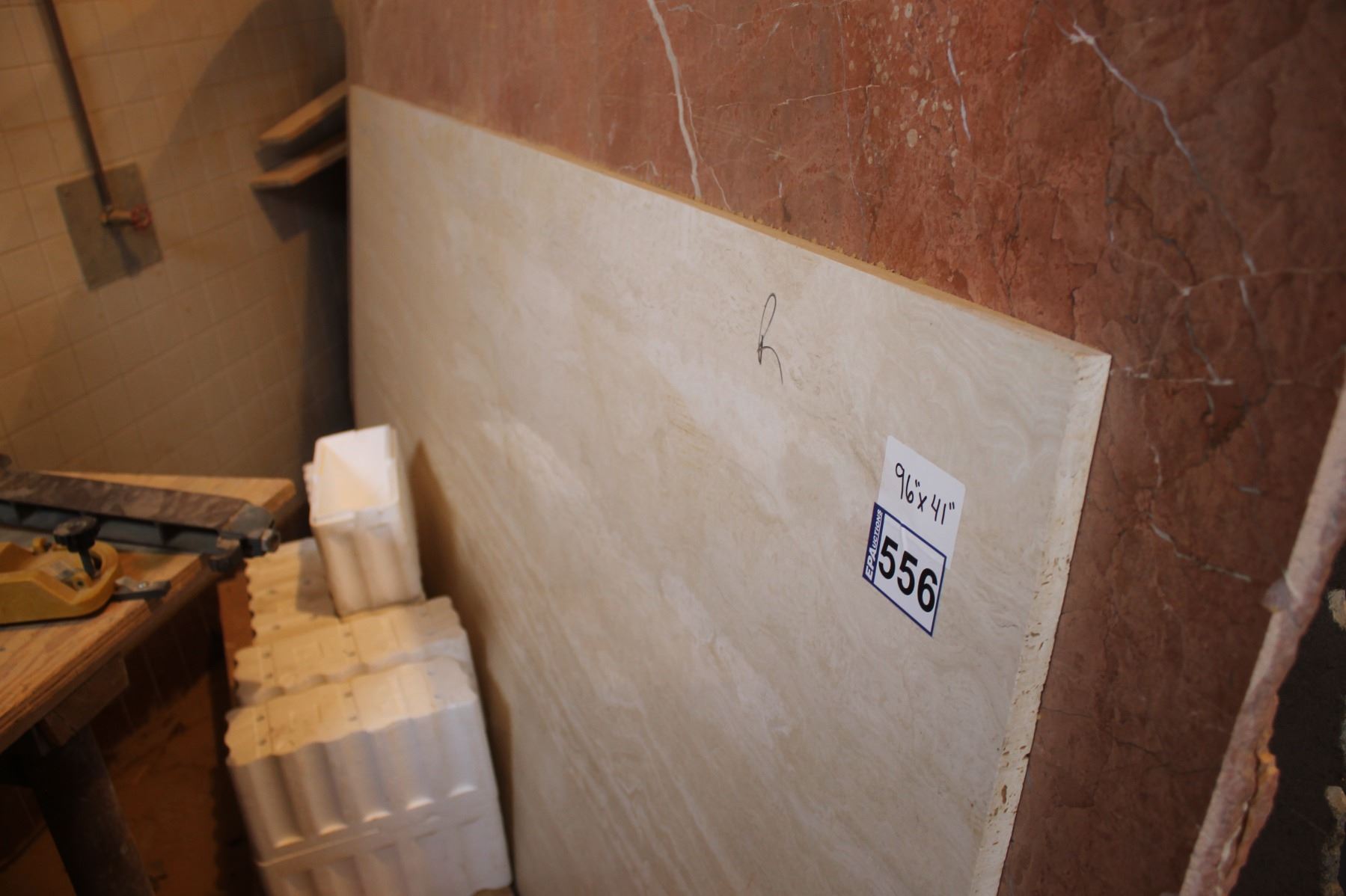 1- Full slab, Approx. 96" x 41" x 3/4" thick, Marble Travertine