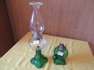 1 GREEN/CLEAR SWIRL LAMP WITH CHIMNEY & GREEN FINGER LAMP BASE