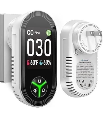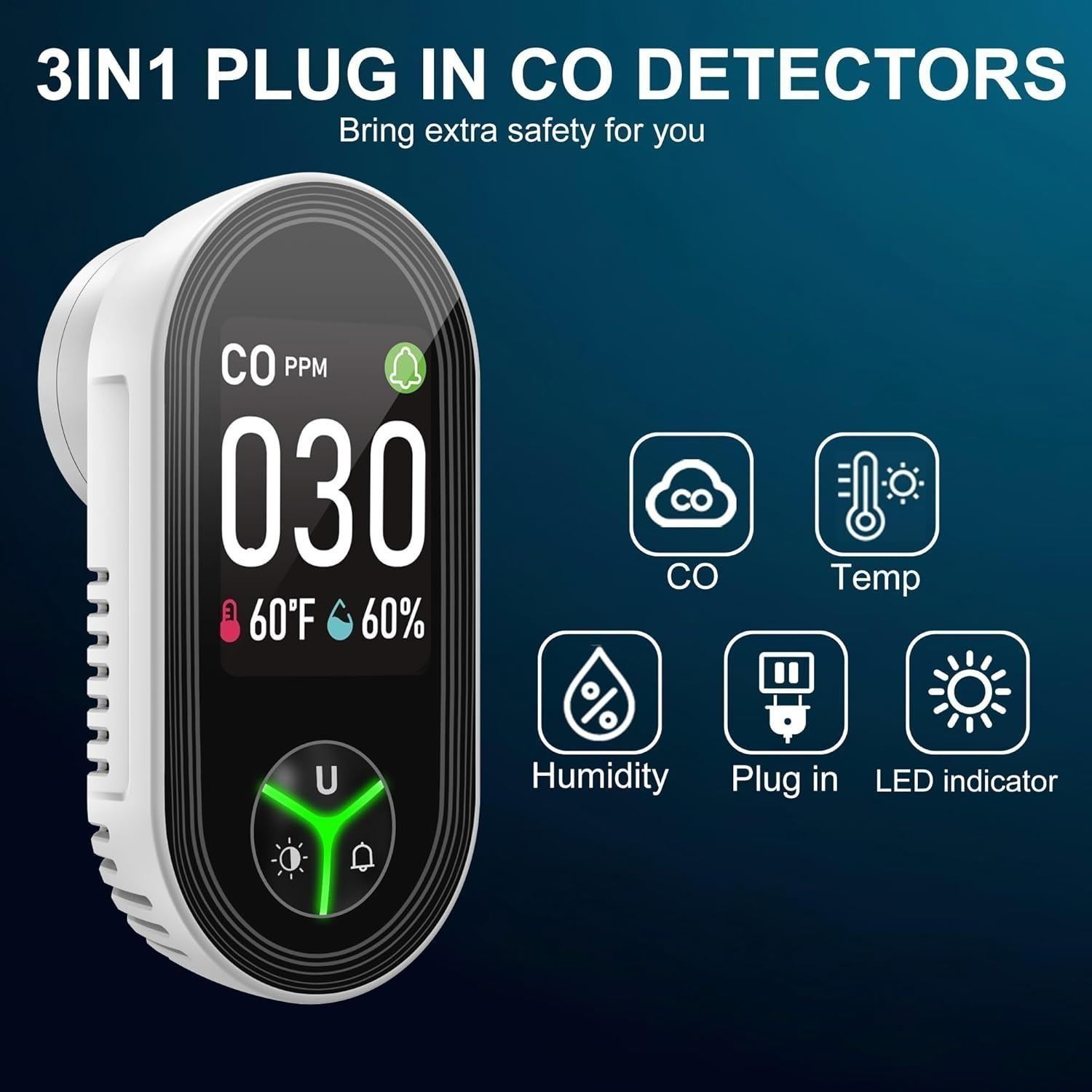 3-in-1 Gedsffati Plug-in CO Alarm Carbon Monoxide Detector, Temperature and Humidity Monitor Indicator Visual&Audible Alarm for Home, Travel, Hotel, RV