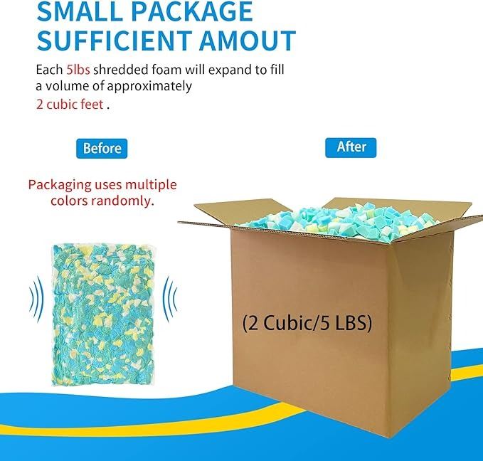 - Welacer 19.5lbs Shredded Memory Foam Filling for Bean Bag Filler, Without Added Gel Particles, Premium Soft and Great for Stuffing, Multi Color and Shape