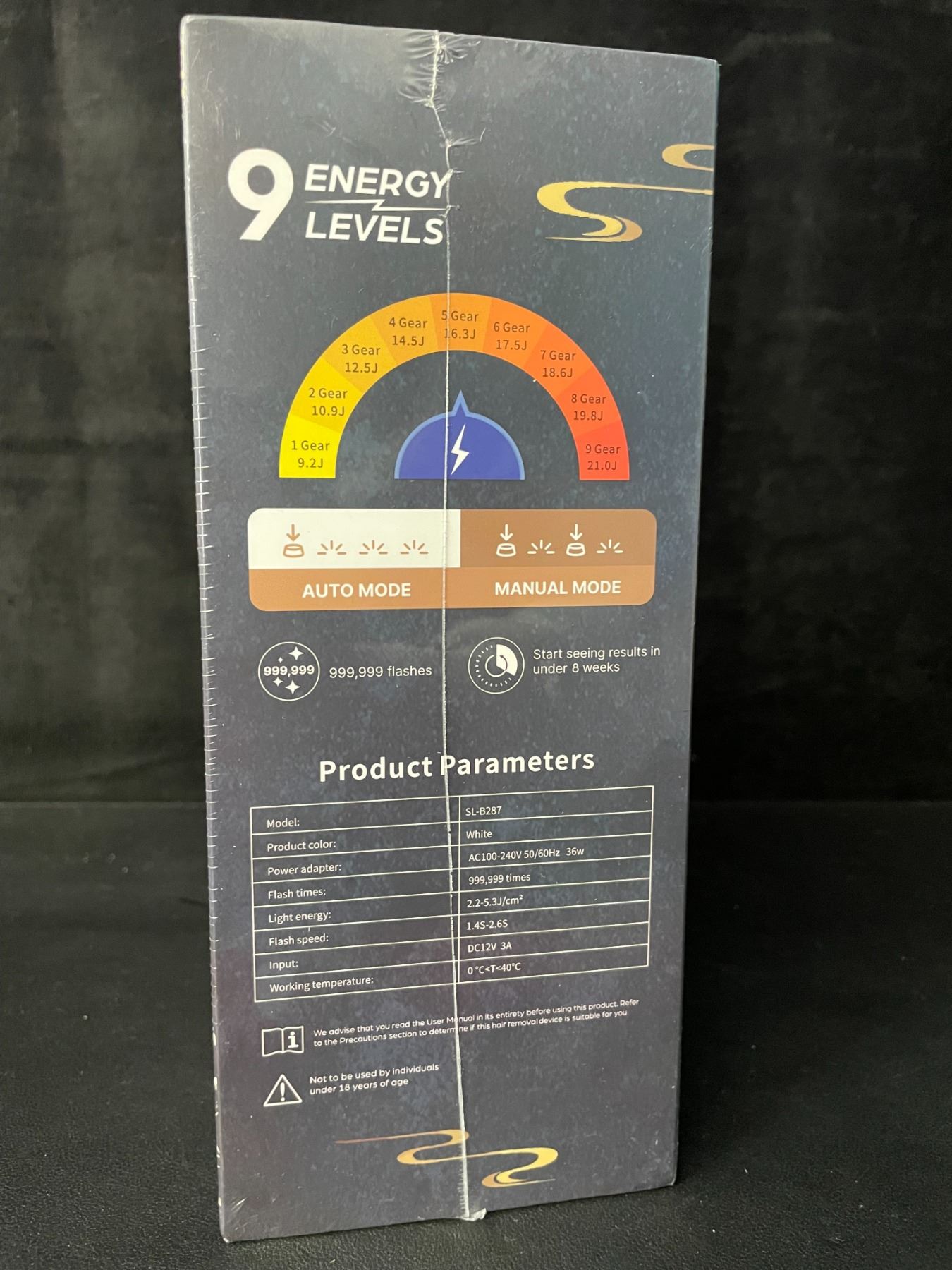 - 999,999 flashes; uses intense flashes of light to target hair at the root