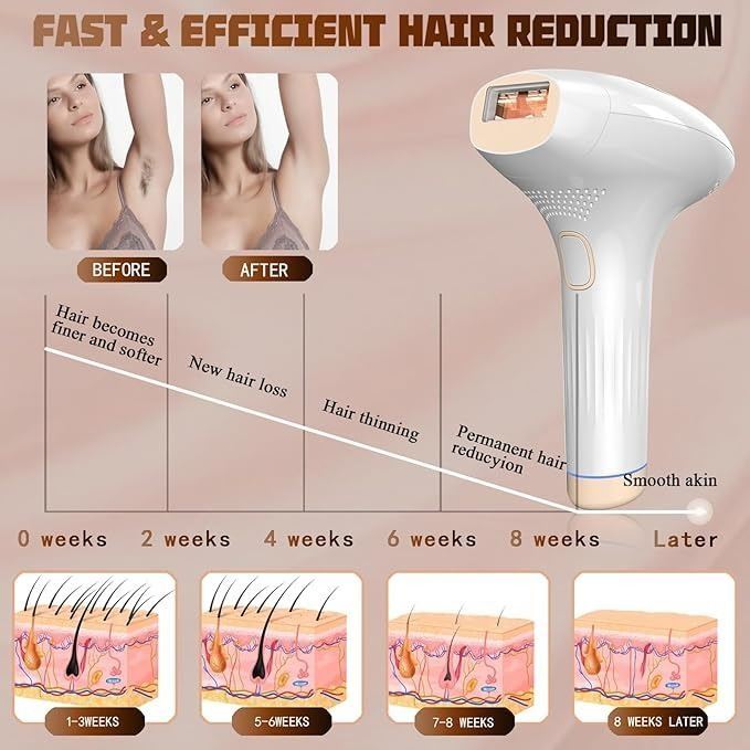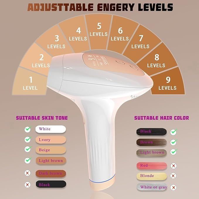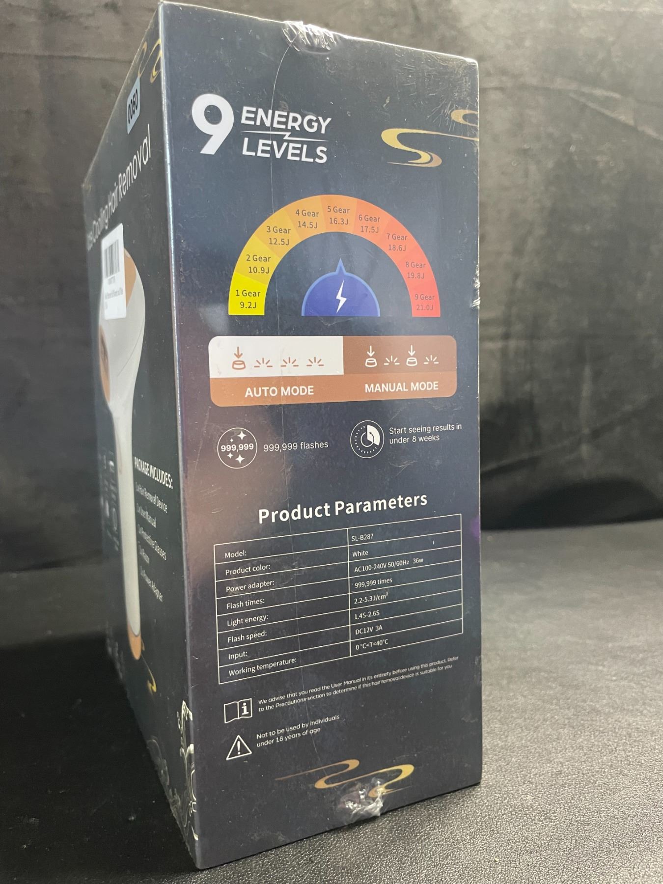 - 999,999 flashes; uses intense flashes of light to target hair at the root