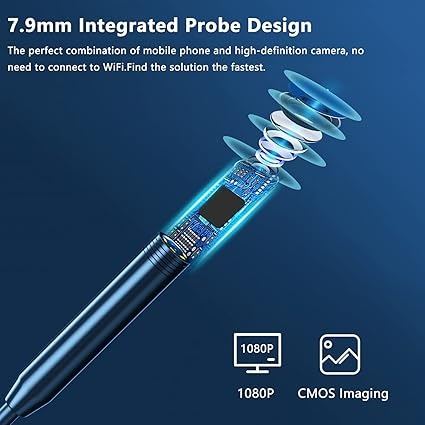 1920P HD Endoscope Camera IP67 Waterproof, 7.9mm Borescope with 8 LED Lights & 16.4FT Snake Cable, Android/iOS Compatible for Car/Plumbing Inspection, Mechanic Gifts