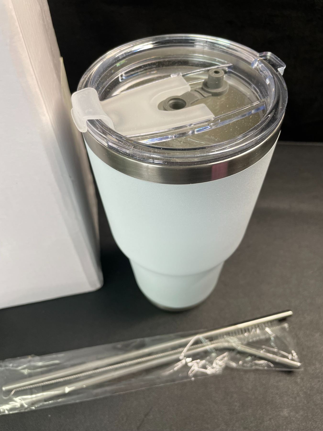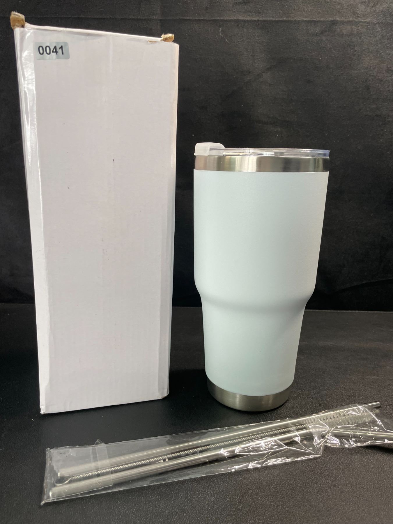 1 Insulated Tumbler Drinking Mug with Stainless Steel Straw - White - New