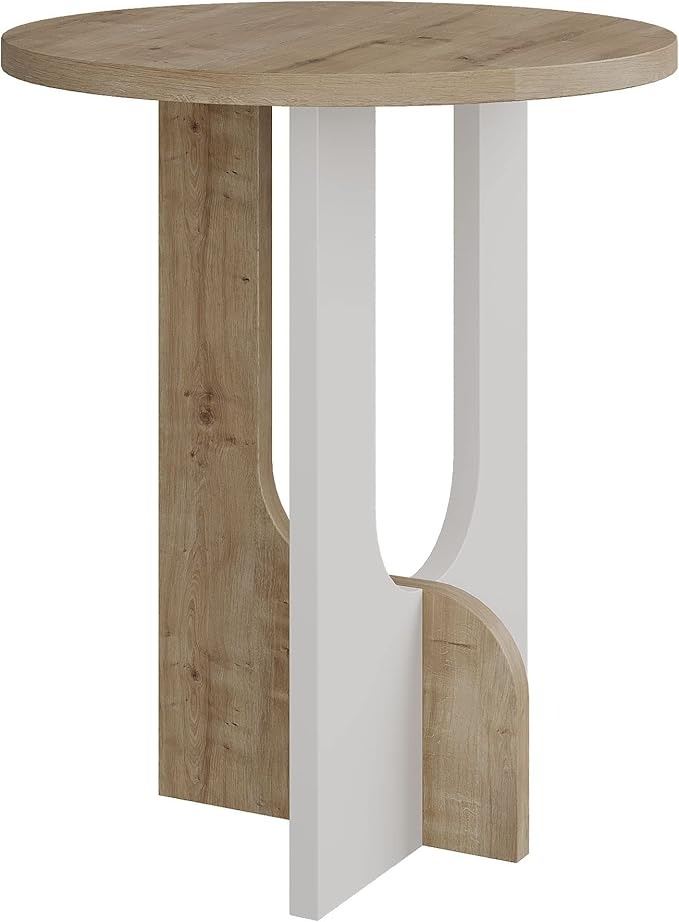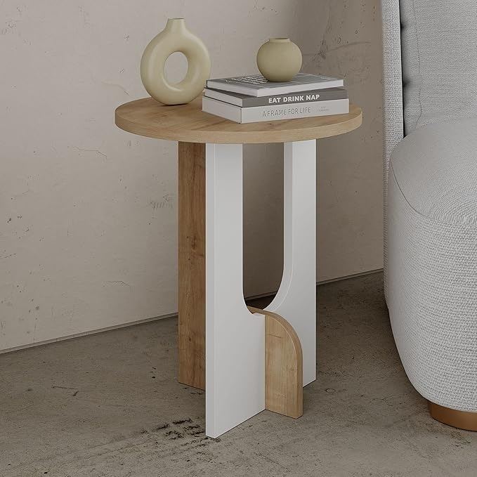 - JV Home Luna Round Side Table Narrow Modern End Table with Storage Narrow Decorative Coffee Table De Nuit | Small Nightstand for Living Room Bedroom; 15.8 Inch size (Oak - White)