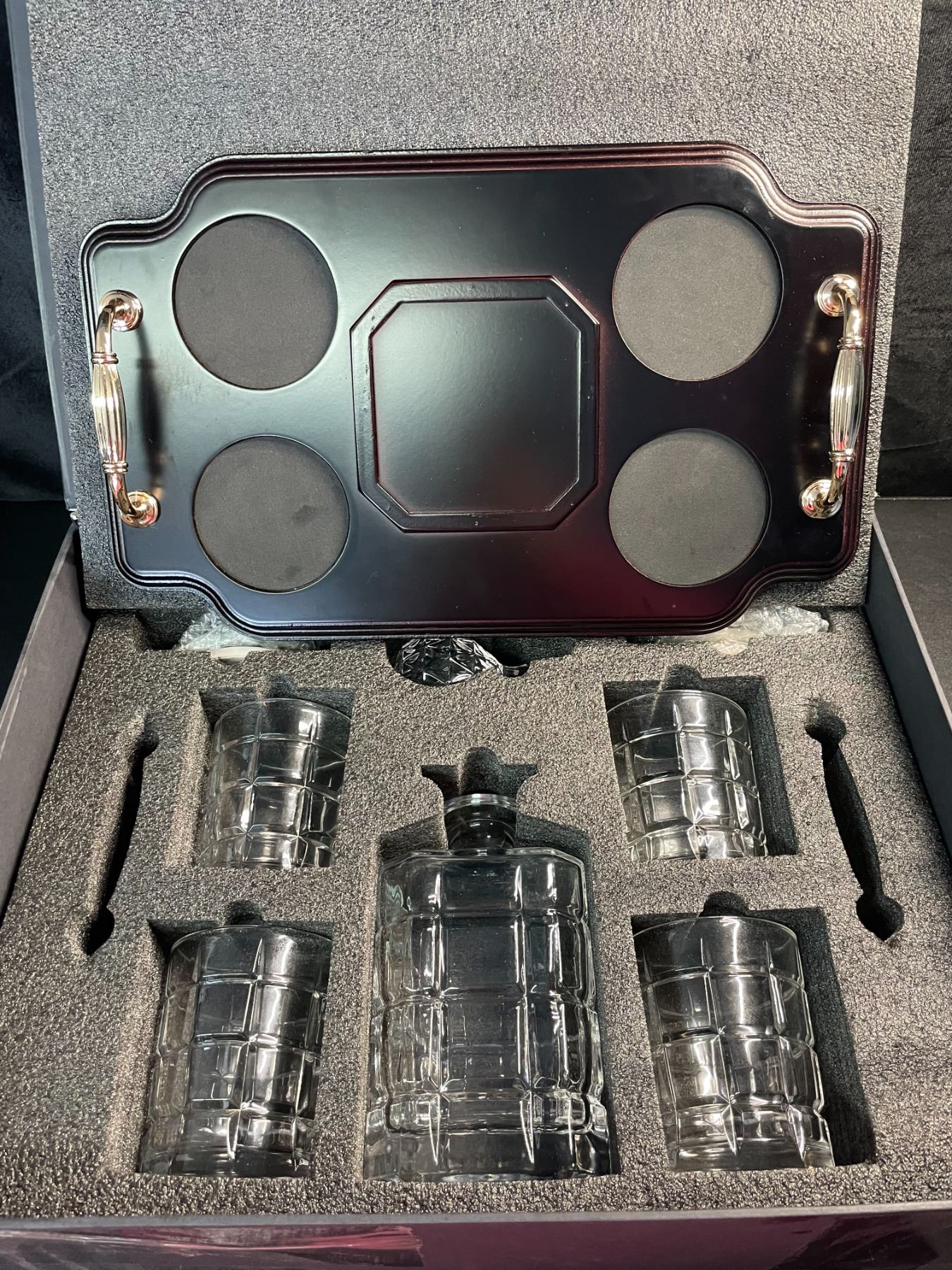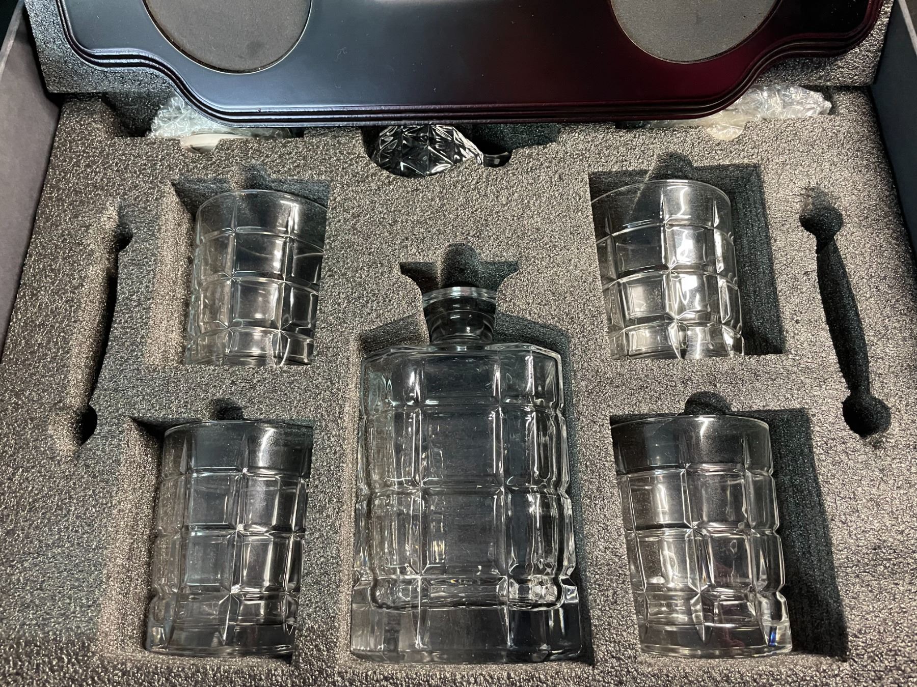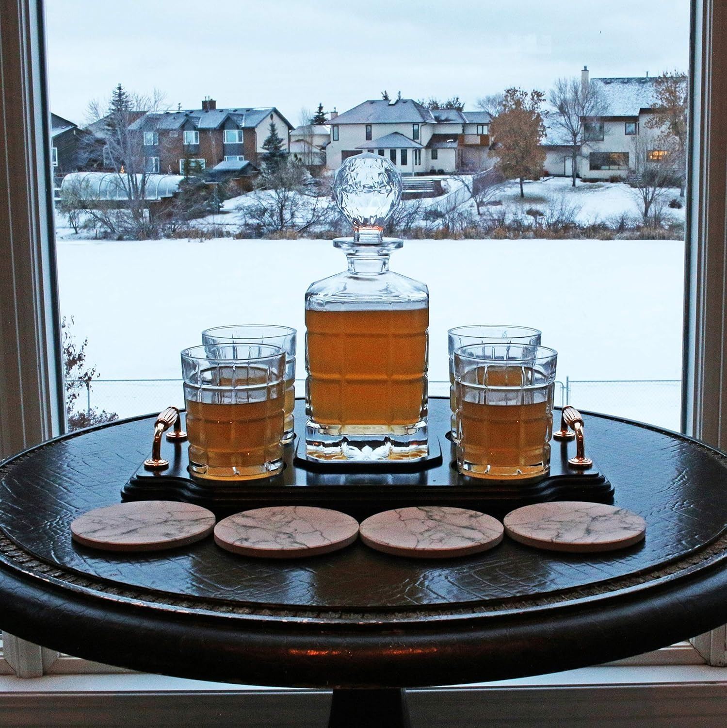 KROWN KITCHEN - Whiskey Decanter Set. Includes Whiskey Glasses, Coasters, and Wood Base. Perfect Dad Gift for Bourbon, Scotch, Liquor, etc. 860ml Capacity