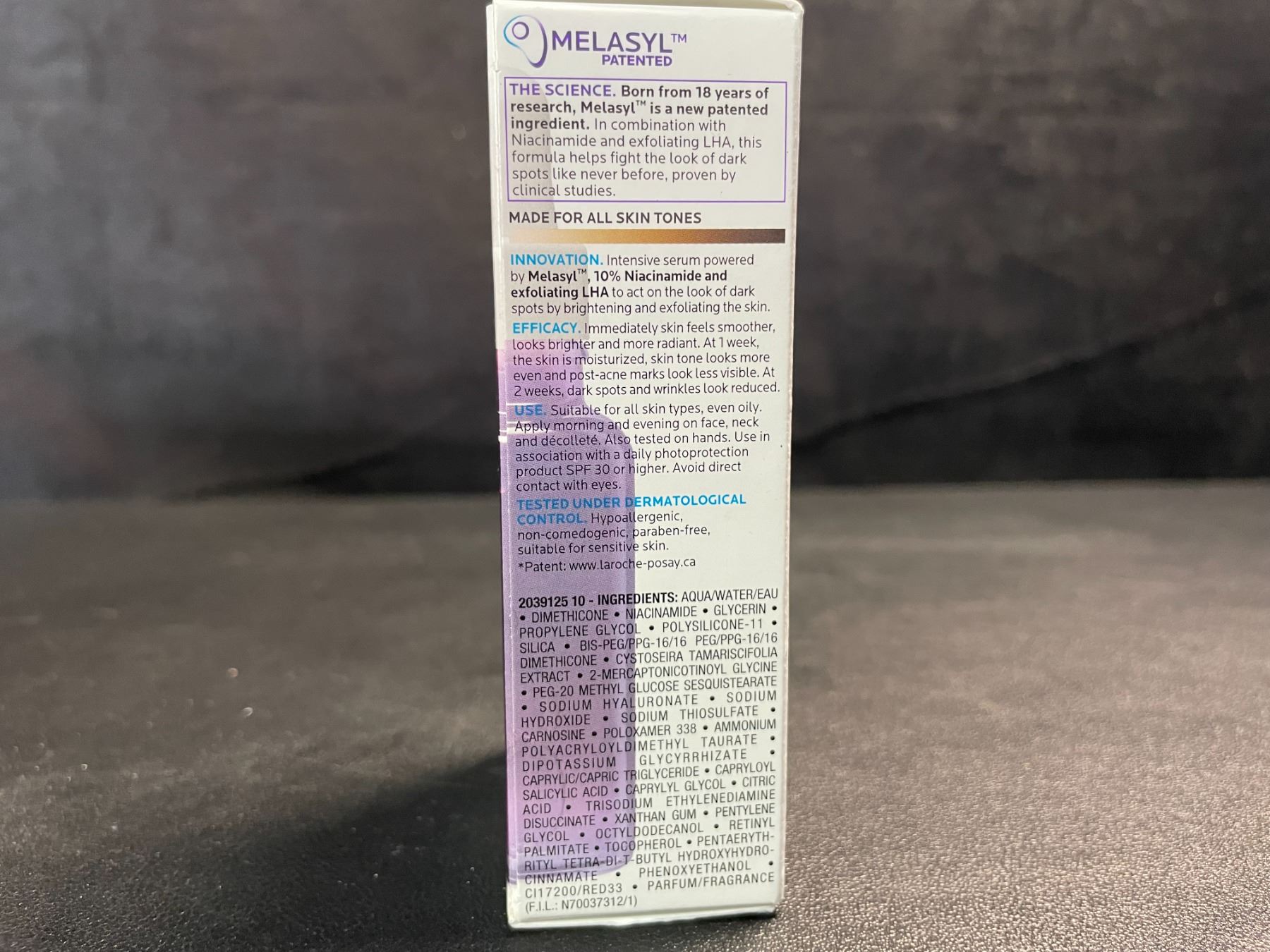 - In combination with 10% Niacinamide and LHA, this new and innovative molecule helps fight the look of dark spots on skin like never before. This anti-aging serum visibly reduces dark spots, including age spots and post-acne marks. It also acts on skin texture and uneven complexion, brightening and refining the skin. A first-of-its-kind dark spot serum with clinical efficacy that was developed for all skin tones.
