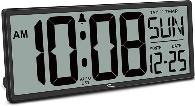 wallarge 14.5'' large digital wall clock battery operated with jumbo numbers, temperature and date - easy to read and set, auto dst
