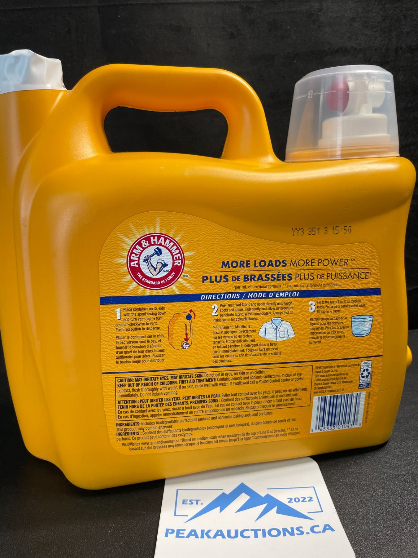 1 Large Jug of Arm & Hammer Original Concentrated Liquid Laundry Detergent - 170 Loads/5.03L - New