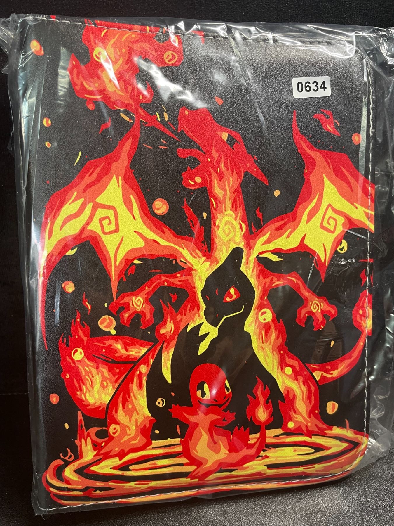 1 Leather Pokemon Premium Card Binder; Charizard/Squirtle Design - Holds 400 Cards - New
