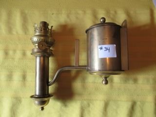 1 MEDIUM BRASS WALL MOUNTED OIL LAMP (NO CHIMNEY)