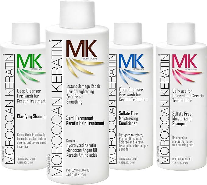 - Moroccan Keratin Hair Treatment Straightening Complex Blowout Brazilian Smoothing Professional Results at Salon or Home Use , Long Lasting organic results for months 4pc Set