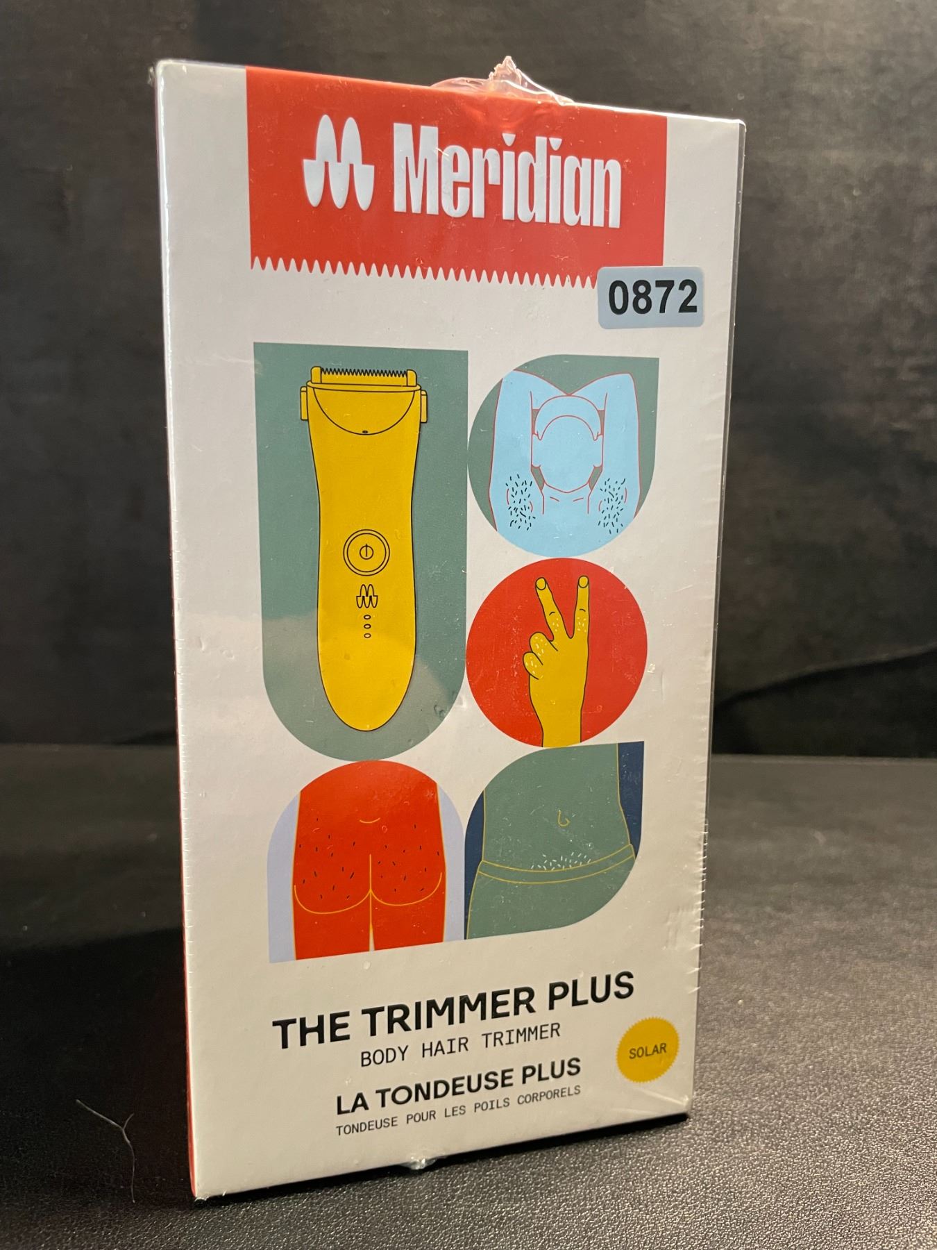 - MERIDIAN Trimmer Plus Body Hair Manscaping Trimmer, Adjustable Guard, USB C Charging, Flash Light, Travel Lock, Charging Dock, Bikini Trimmer, Mens Body Hair Trimmer - Solar Yellow Colour