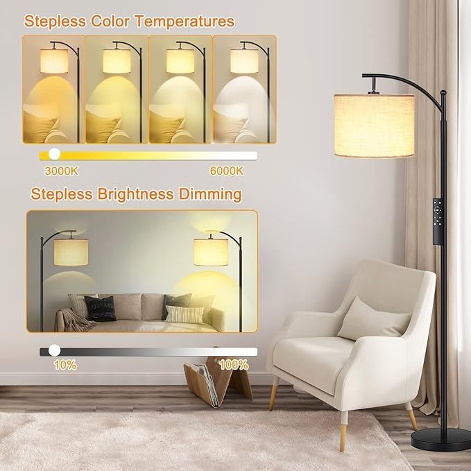 - Floor Lamp, Floor Lamp for Living Room 9W/1000LM Led Floor Lamp with Remote Control, 4 Color Temperature & Stepless Dimmable Timmer Modern Arc Floor Lamp Standing Lamp for Bedrooms-Black