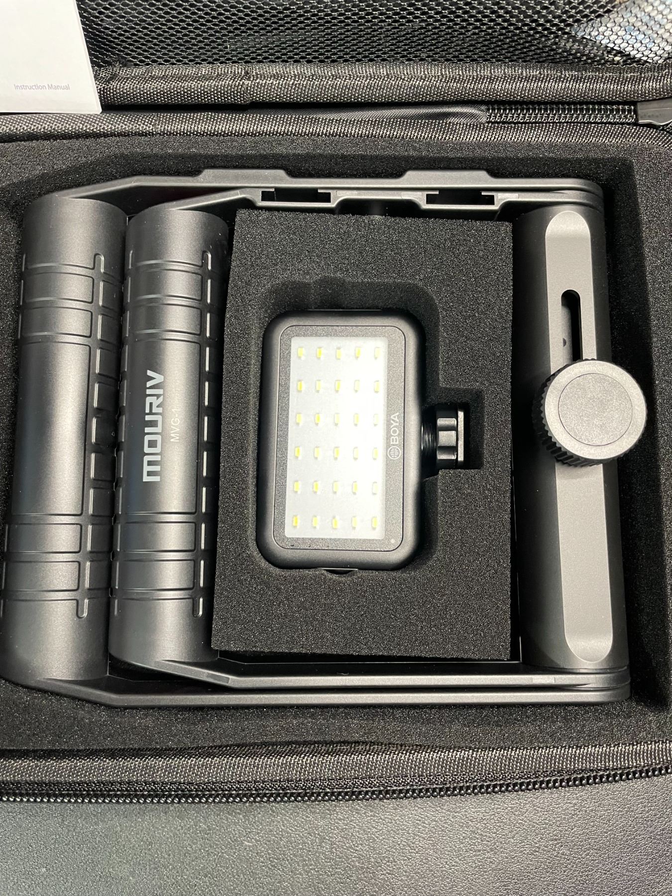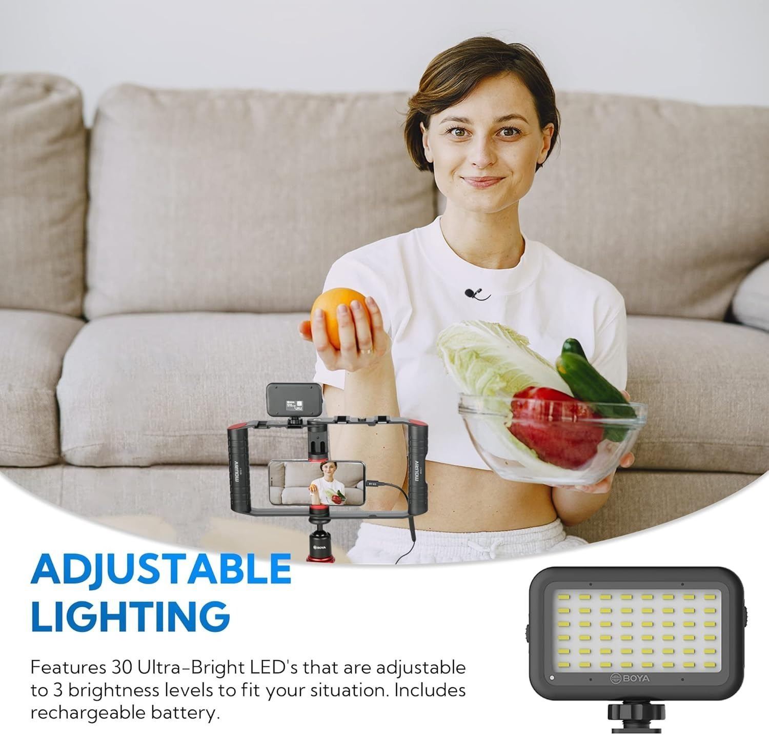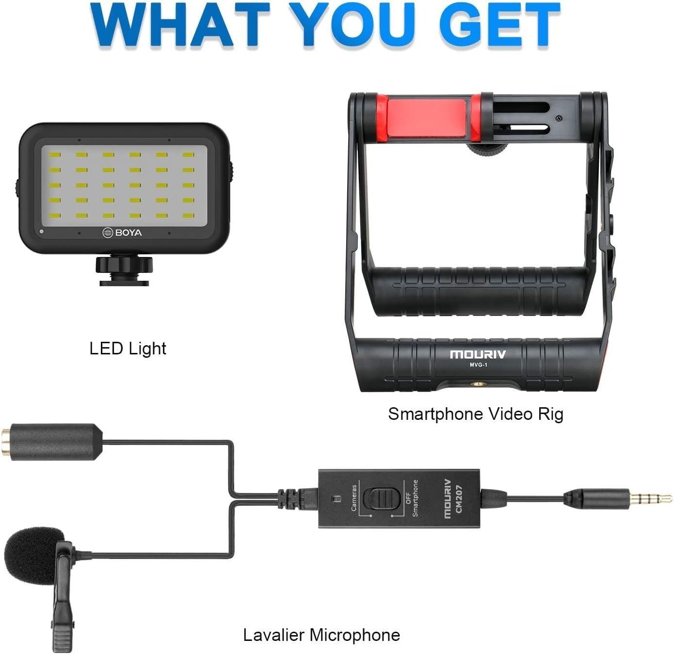 - Mouriv VK-R1X-iPhone/Android Compatible Vlogging Kit Phone Video Kit Accessories: Smartphone Video Rig, LED Light and 3.5mm Lavalier Microphone for Phone Video Recording for YouTube, Vlogging, etc.