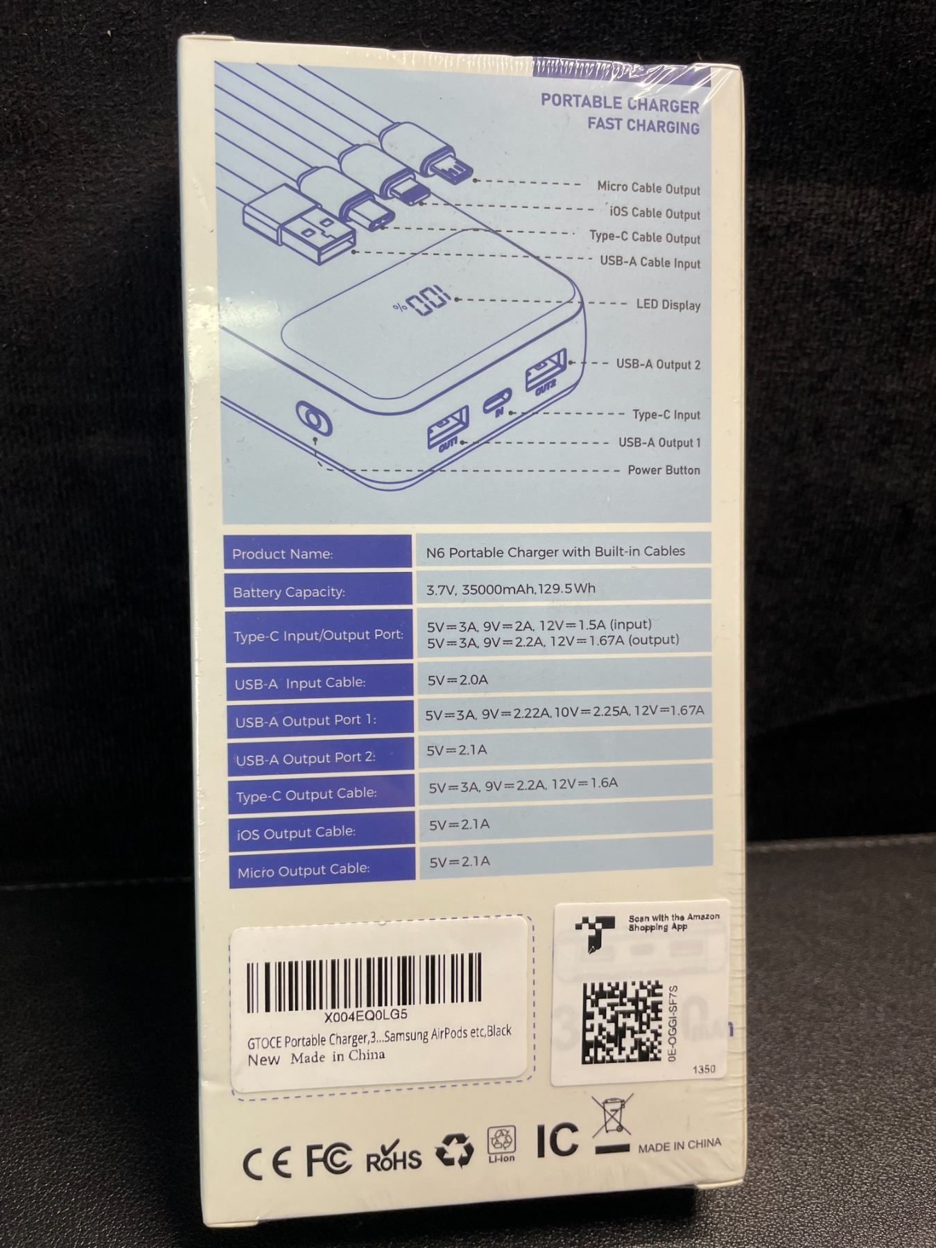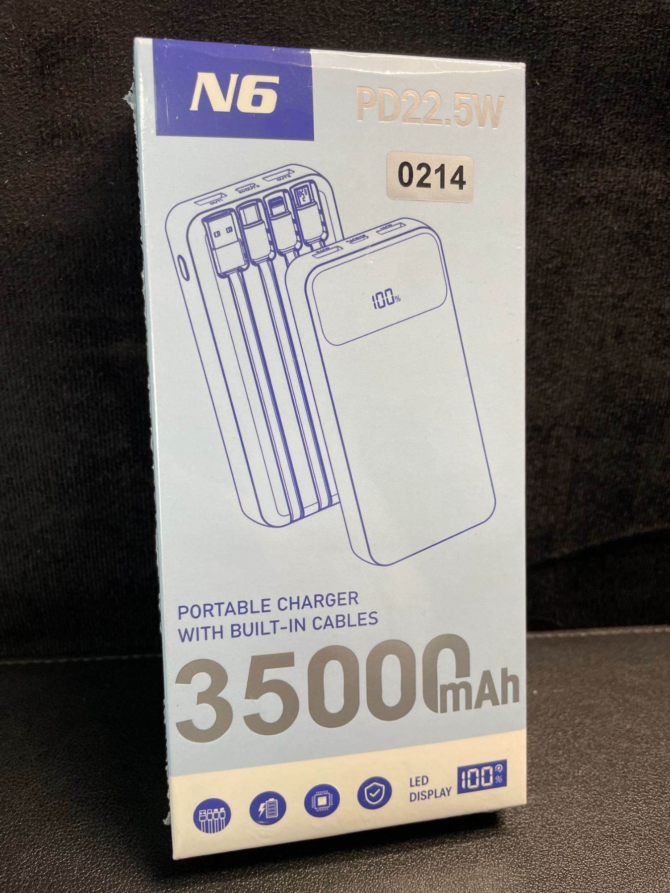 1 N6 High-Power Portable Power Bank/Charger (35,000mAh) w/ Built-In Charge Cables - New Sealed!