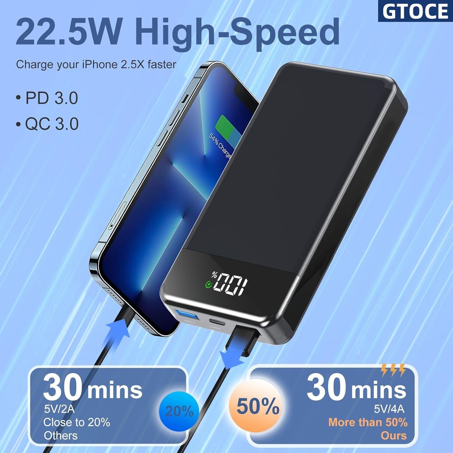 Portable Charger,35000mAh Power Bank with 22.5W Fast Charging LED Digital Display Battery Pack with 6 Outputs 2 Inputs, Type C Powerbank Portable Charger for iPhone 15 Samsung AirPods etc., Black